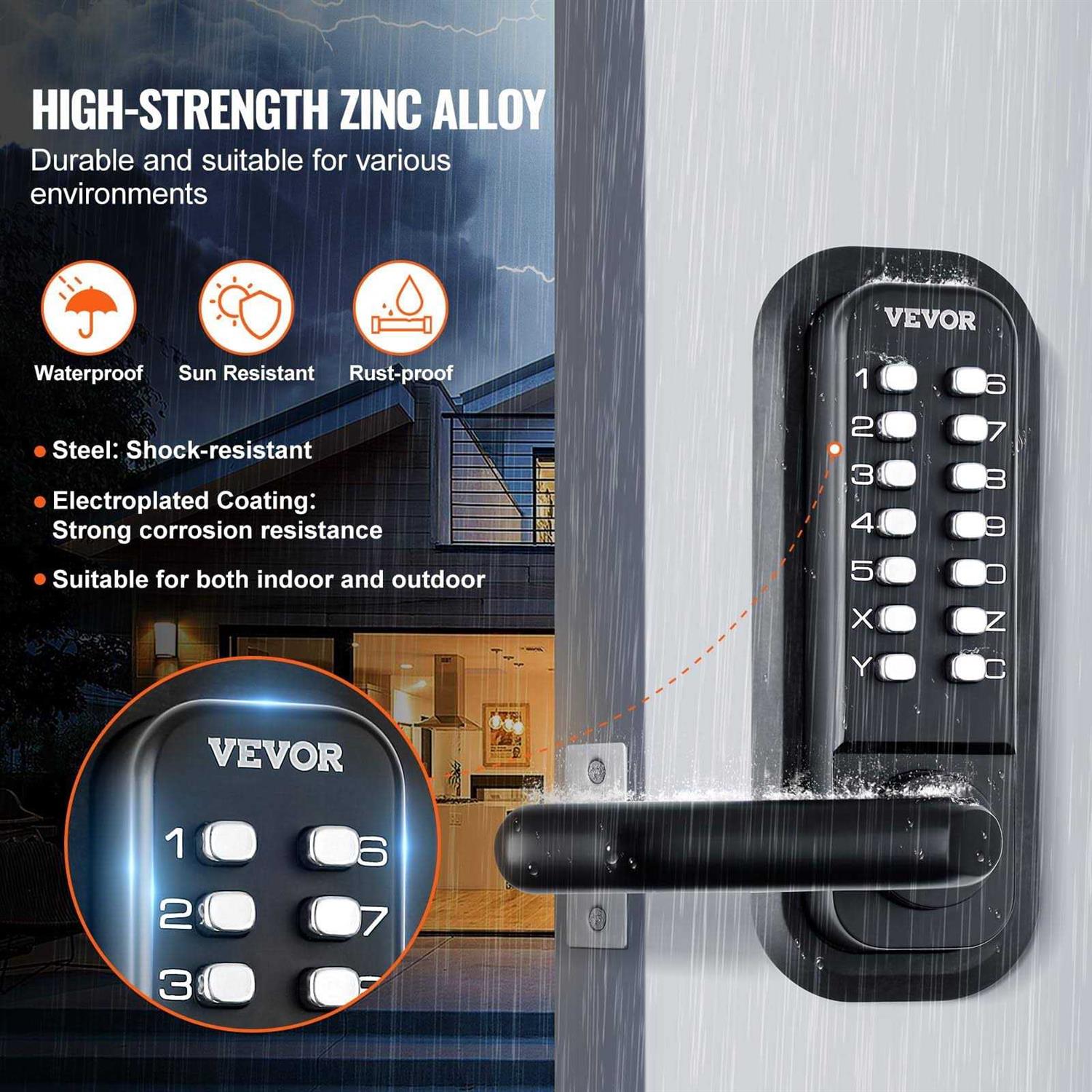 VEVOR Mechanical Keyless Entry Door Lock 14 Digit Keypad and Handle Embedded