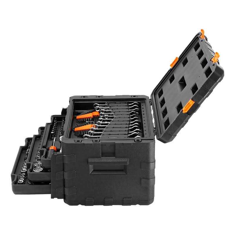 Built to Last: Our mechanics tool set is mainly made of CR-V chrome plating to ensure resistance to rust and wear, maintaining its quality even during extended usage. Whether for household repairs or professional tasks, it is reliable. Rigorously tested premium materials ensure exceptional durability and longevity. Tackle various repair and installation tasks with confidence. Diverse Components: This mechanic tool kit is your versatile partner, perfect for car care, DIY adventures, and equipment tinkering. With a range of socket sizes, you’ll conquer various tasks effortlessly. Robust construction and precision design ensure stability and reliability. Withstand 95 to 3017 in-lb High Torque: Our tool set takes on challenges from dismantling tight nuts to installing machinery. Trust in quality materials and a rugged build – it’s your choice for the pro or DIY enthusiast. Attachments for the Win: Our socket set comes with complete accessories, meeting most of your usage needs. Effortless manual installation ensures efficient work experience. PE-HD Portable Storage Case: This tool set mechanics kit features a lightweight and portable design for easy carrying and storage. Neat compartments ensure you always grab the right piece for the job. No more hunting, just a toolbox that gets you right into the action, wherever you are.