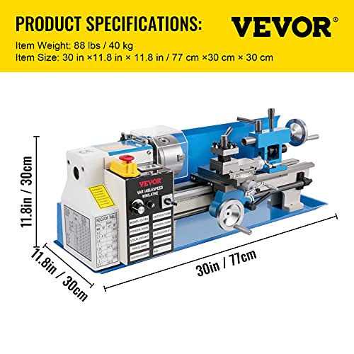 VEVOR Mini Metal Lathe, 7″x14″, Benchtop Metal Lathe, 550W Variable Speed 2250 RPM Metal Lathe, with 3-Jaw Chuck Mini Lathe Machine, Precision Mini