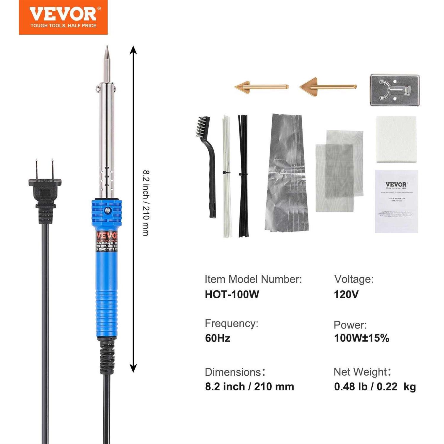 VEVOR Plastic Welding Kit, 100W Plastic Welder Soldering Iron Gun, Car Bumper Repair Kit with 2 Welding Tips, 1 Soldering Tip, 20 Plastic Welding