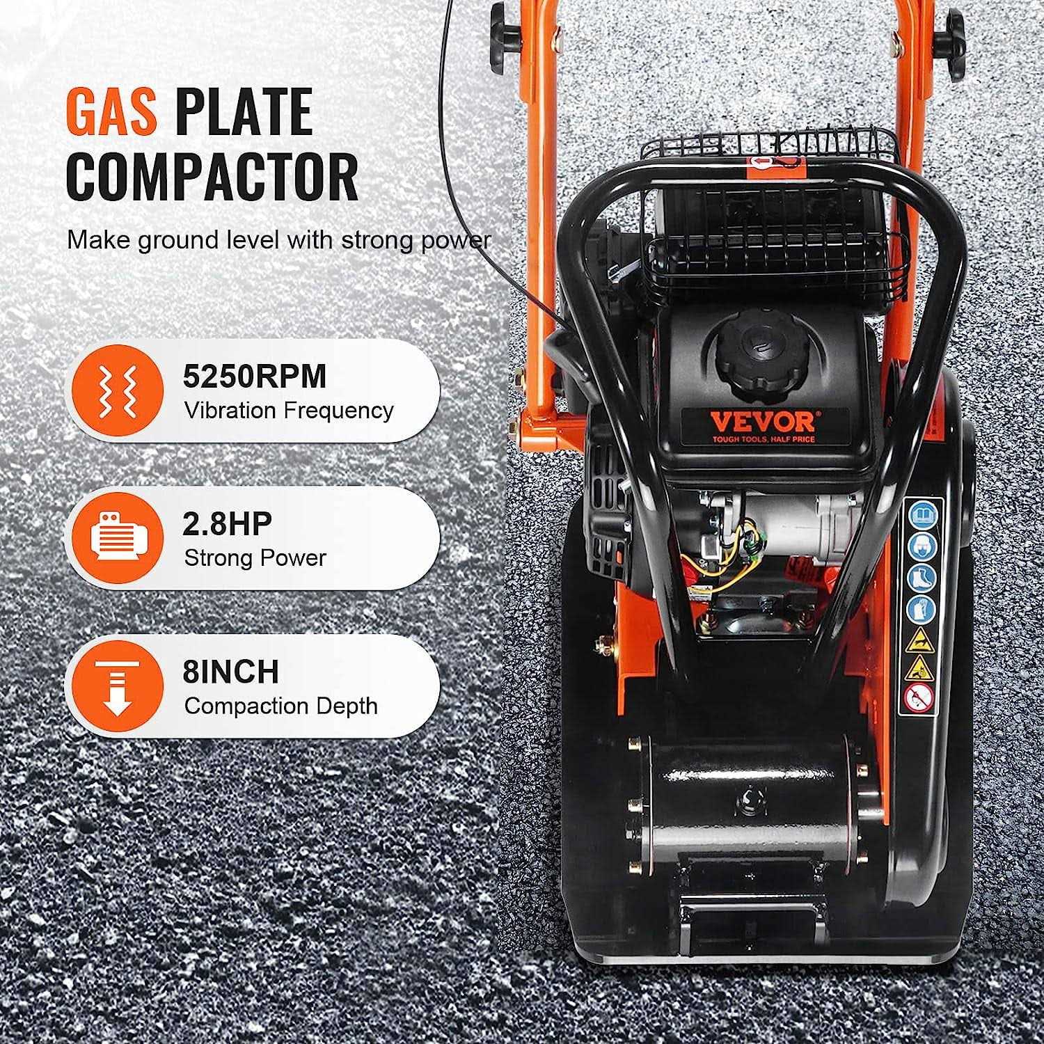 VEVOR Plate Compactor 2.8 HP 78.5cc Gas Engine 5,250 VPM 1,920 lbs Force Vibratory Compaction Tamper with 18.7 x 11.8 inch Plate for Walkways Patios