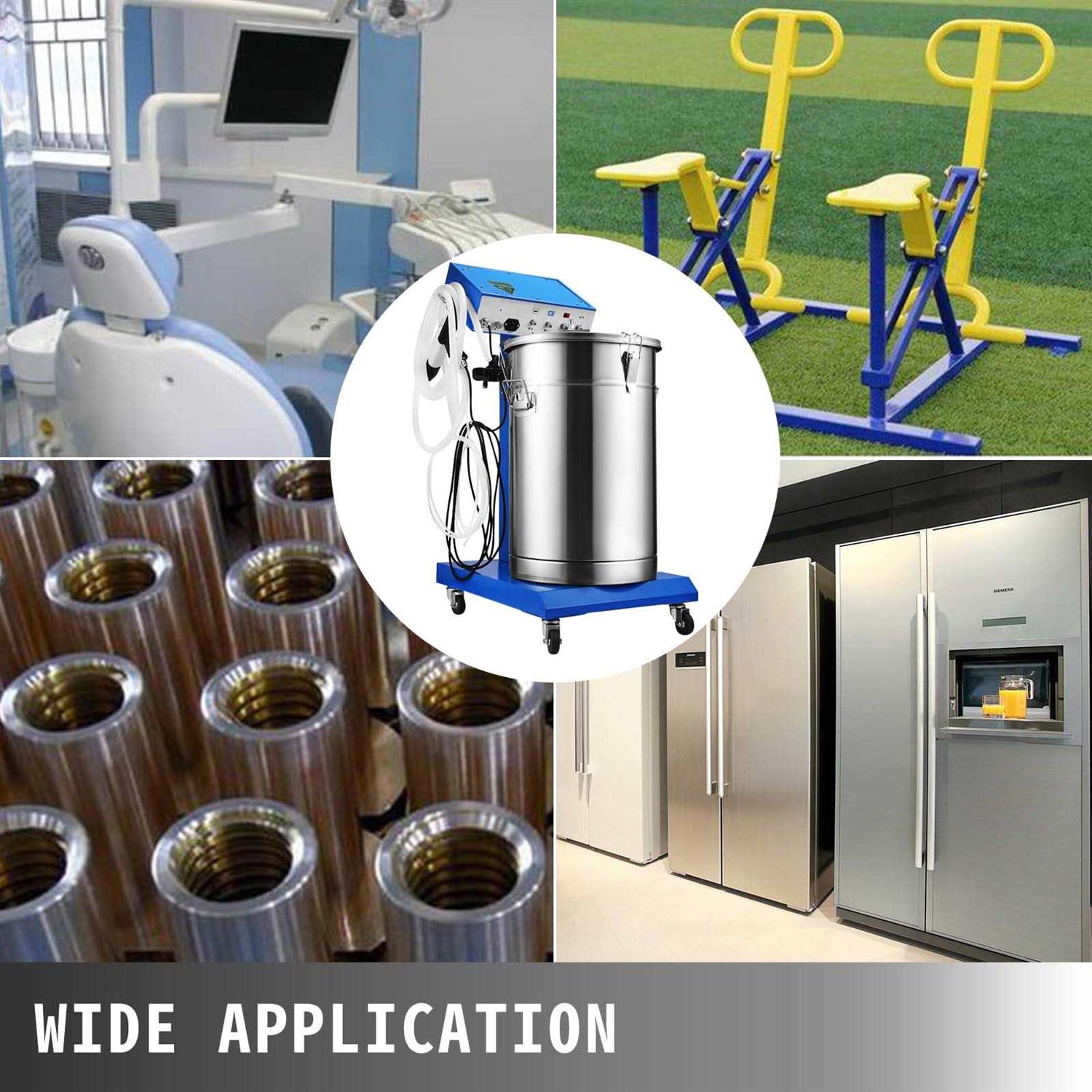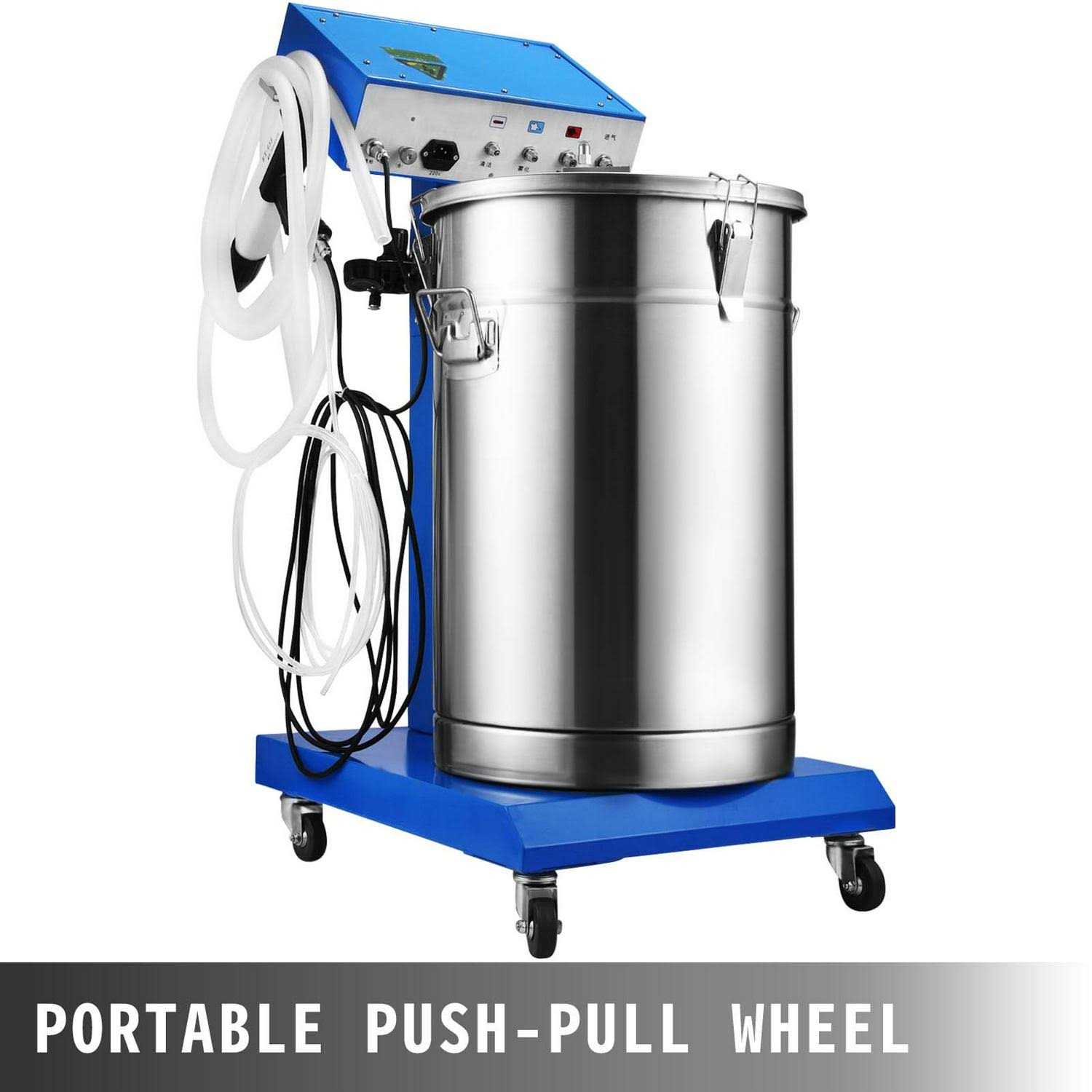 Brand Introduction VEVOR is a leading brand that specializes in equipment and tools. Today, VEVOR has occupied markets of more than 200 countries with 10 million plus global members. Why Choose VEVOR? 1. Tough Quality Assurance 2. Incredibly Low Prices 3. The charged powder particles adhere to the elements and are held there until melted and fused into a smooth coating in a curing oven. Premium Material The powder bucket is made of stainless steel, with a humanized design, and the widened frame increases the load-bearing capacity. Control Panel Each function is marked for your convenience. Easy to adjust powder amount, atomization, and cleaning. The powder is smooth and sprayed evenly. High-Quality Powder Pump Electrostatic Manual Powder Coating has a powder pump, advanced technology to makes the powder more uniform, the powder amount is large, and the atomization effect is good. Portable Push-Pull Wheel Powder Coating Machine Electrostatic has four universal wheels, a mobile push-pull wheel design, easy to move, save time and effort, suitable for a variety of working environments. High-Quality Spray Gun The Powder Coating Gun is durable and lightweight, and the powder output effect is efficient and smooth. The Spraying Gun Paint adopts an ergonomic handle design to reduces the pressure caused by long-term spraying force on the arm. Wide Application Electrostatic powder spraying equipment is widely used in home appliances, hardware, security doors and windows, construction, auto parts, sports equipment, medical equipment, and other industries. Specifications Power Voltage: AC110V Frequency: 50/60Hz Input Power: 50W Electromagnetic Valve Control Power Voltage: DC110V Maximum Output Current: 150Ua Output Power Voltage: 0-100kv Work temperature: -10~45 Output Powder Volume: Max. 450g/Min Polarity: Negative Gun Weight: 480g Length Of Gun Cable: 4 m Powder Hopper Volume: 45L