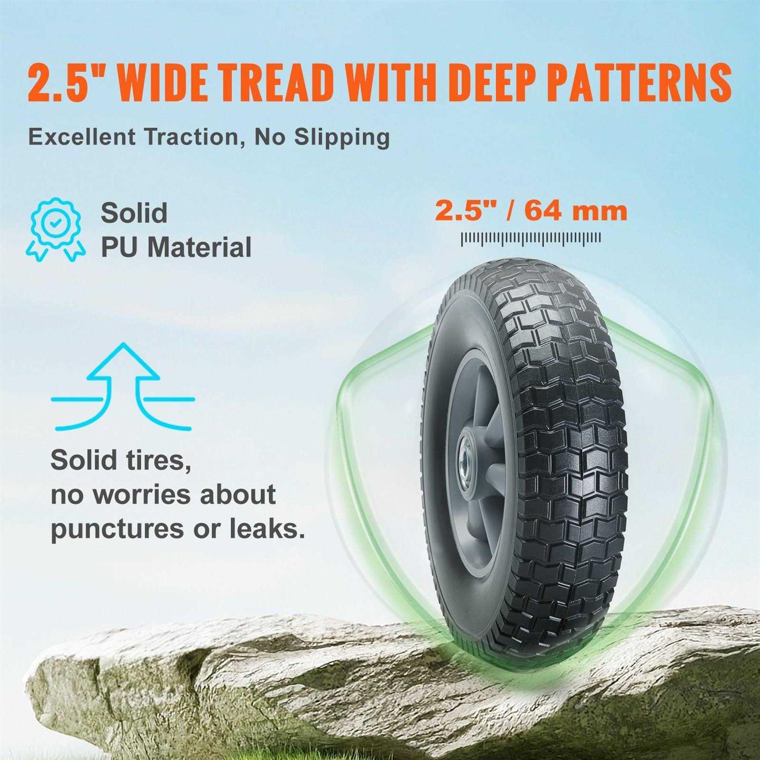 VEVOR Solid PU Run-Flat Tire Wheel, 10,Flat Free Tubeless Tires and Wheels for Hand Truck