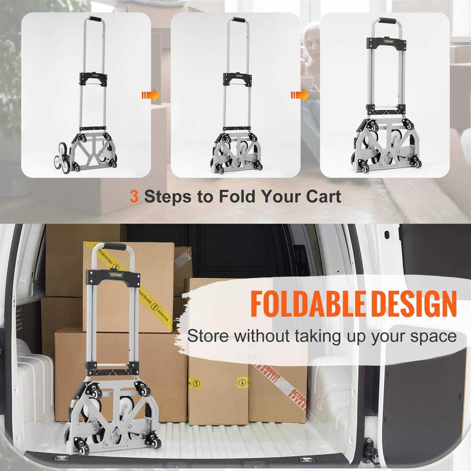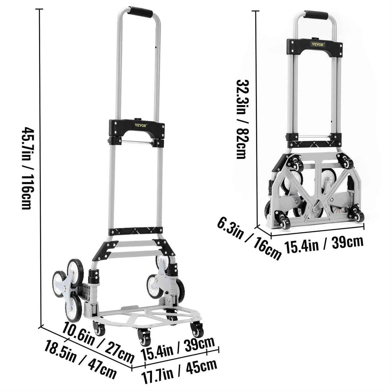 VEVOR Stair Climbing Cart 220 lbs Capacity Hand Truck with Adjustable Handle