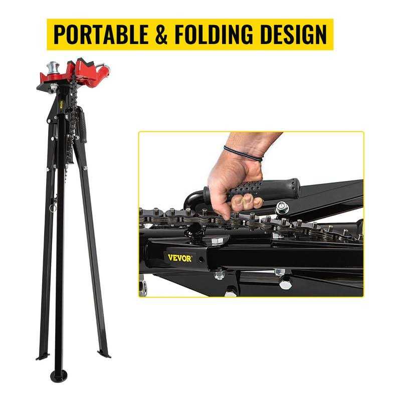 VEVOR Tripod Pipe Chain Vise 18-5 Pipe Capacity 0H90B9QLO6IN4RUNBV0 840281597130 18-5 Tripod Chain Vise 36.4 Chain & Steel Material & Folding Legs Built for rugged job site use our portable pipe vise securely holds pipe in place for threading or cutting. Designed for easy portability and set-up the pipe vise stand features integral legs along with a carrying handle. It is made of high-quality carbon steel sturdy durable and abrasion-resistant. 18-5 Pipe Capacity Compact & P…