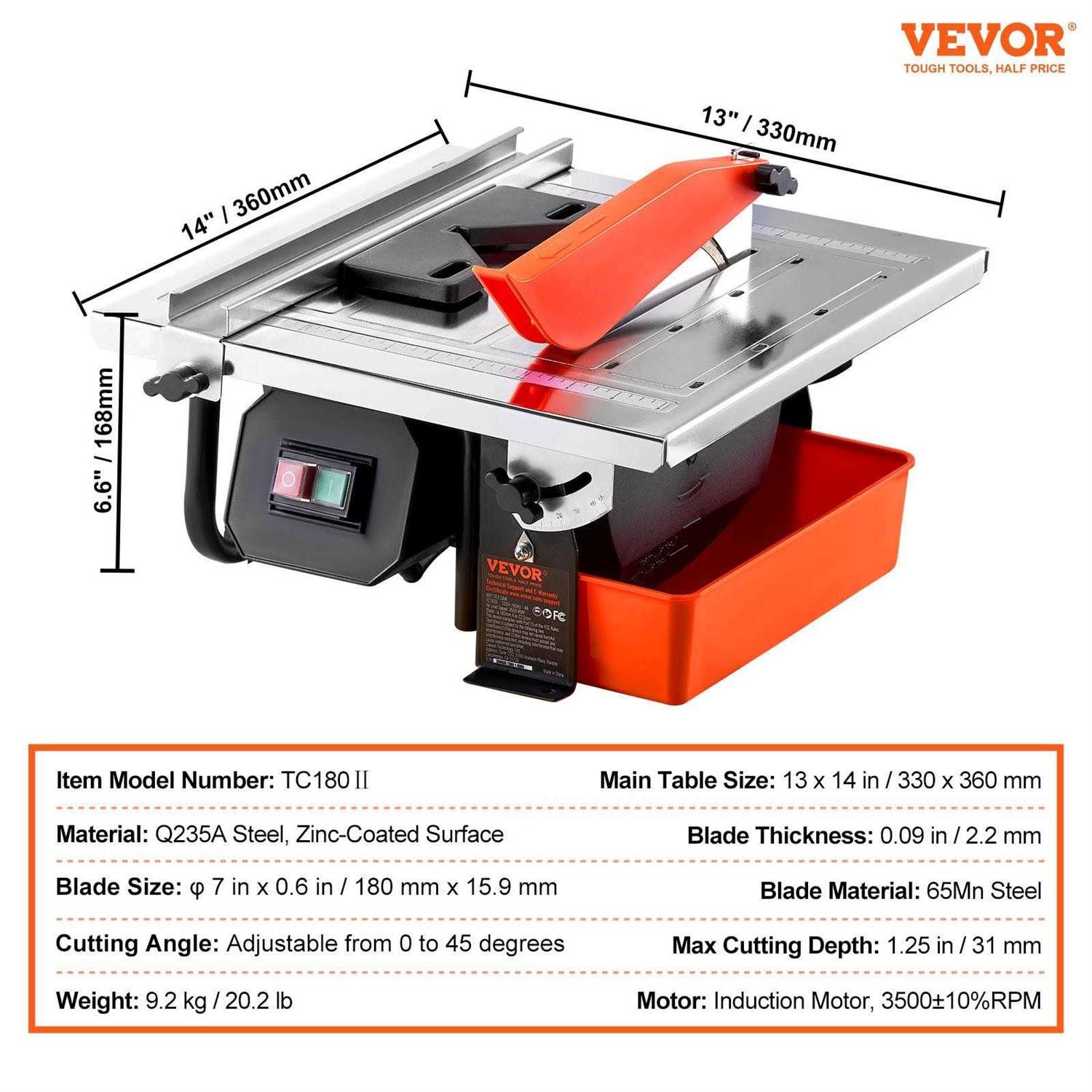 VEVOR Wet Tile Saw 7-inch 65Mn Steel Blade 3500 RPM Induction Motor