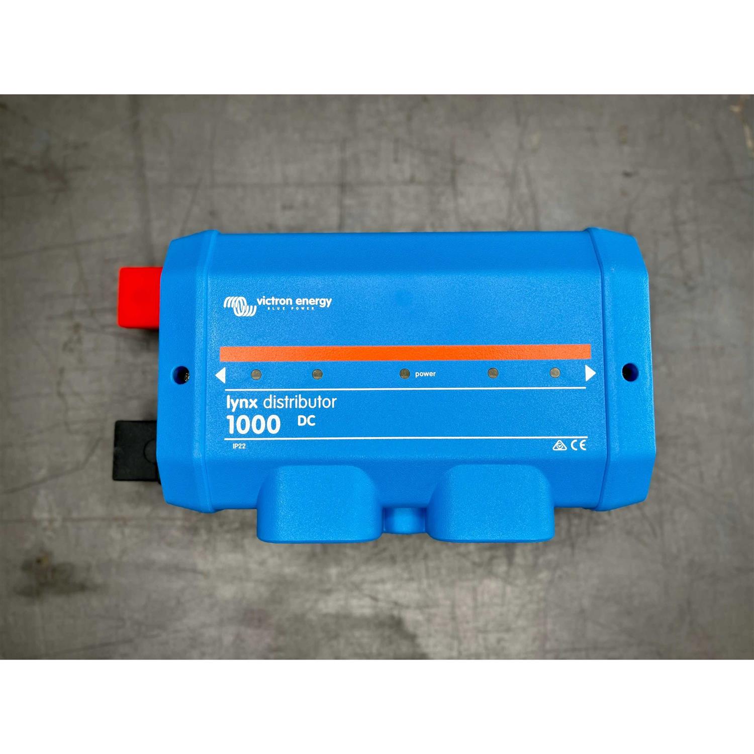 Contains a positive and negative bus-bar and provides a connection for 4 individual DC equipment circuits loads or DC groups. It has a space for individual DC fuses per DC group. There is an optional feature of an LED for each fuse to indicate if fuse is blown. If you wish to use the fuse indication LEDs on the Lynx Distributor it also requires a connection to a Lynx Shunt. The Lynx Shunt contains the necessary wide input 8 to 70VDC power supply to output the required 5V 45V-55V power requirement of the Lynx Distributor circuit board. RJ10 fly leads are used to connect the Lynx Shunt to the Distributor. This RJ10 cable is supplied with the Distributor in the box. There are two ports on the Lynx Shunt and it is possible to use either. When all is OK only the central LED is green; when a fuse has blown or is missing the central and blow fuse circuit LEDs turn red. If you are not using all connection points in your DC distribution it may be necessary to fit dummy fuses to extinguish the red LEDs.