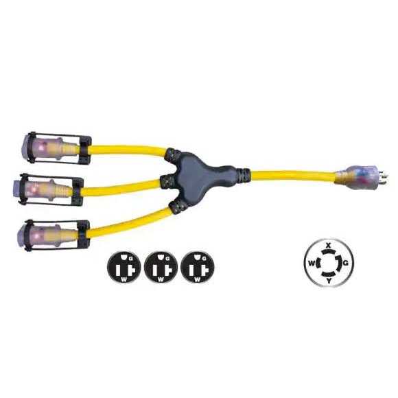 This 3-Outlet W Adapter Converts a Single L14-30 Plug into 3 NEMA 5-20 Receptacles. That Helps Turn the Inadequate L14-30 outlet into 3 more useful Outlets. The L14-30 Outlet on most generators is not utilized, but this adapter will create 3 more outlets that can take a standard U-Ground Plug which most tools and appliances have.