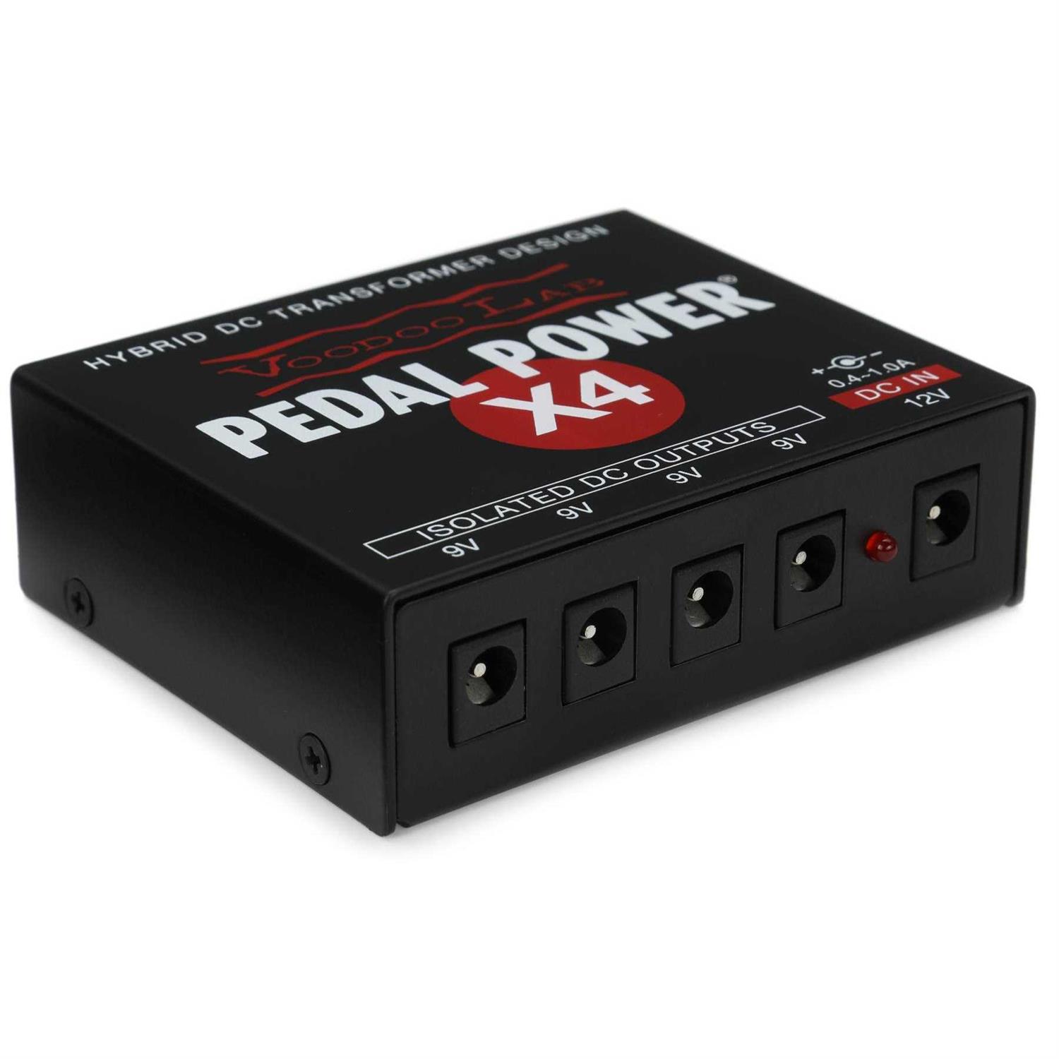 Pedal Power X4 is a professional isolated power supply for both battery-operated and high-current DSP effects. Its ultra-compact size fits even the smallest pedalboards—including Voodoo Lab Dingbat Tiny and Pedaltrain Nano—and operates at any mains voltage for international touring. X4’s innovative hybrid DC transformer design incorporates exotic components, linear regulation, and computer optimized filtering to establish industry-leading audiophile quality power that unveils the hidden sonic potential of your rig. As well as delivering the cleanest, most reliable power for small pedalboards, Pedal Power X4 shines as a supplementary power supply in an expanding rig. Powering directly from any 12V 400m A output or X-Link port, X4 adds four isolated outputs to an existing Pedal Power. X4 can also power from the AC courtesy outlet of a Pedal Power 2 Plus, significantly upgrading both its isolated output capacity and high current capability.