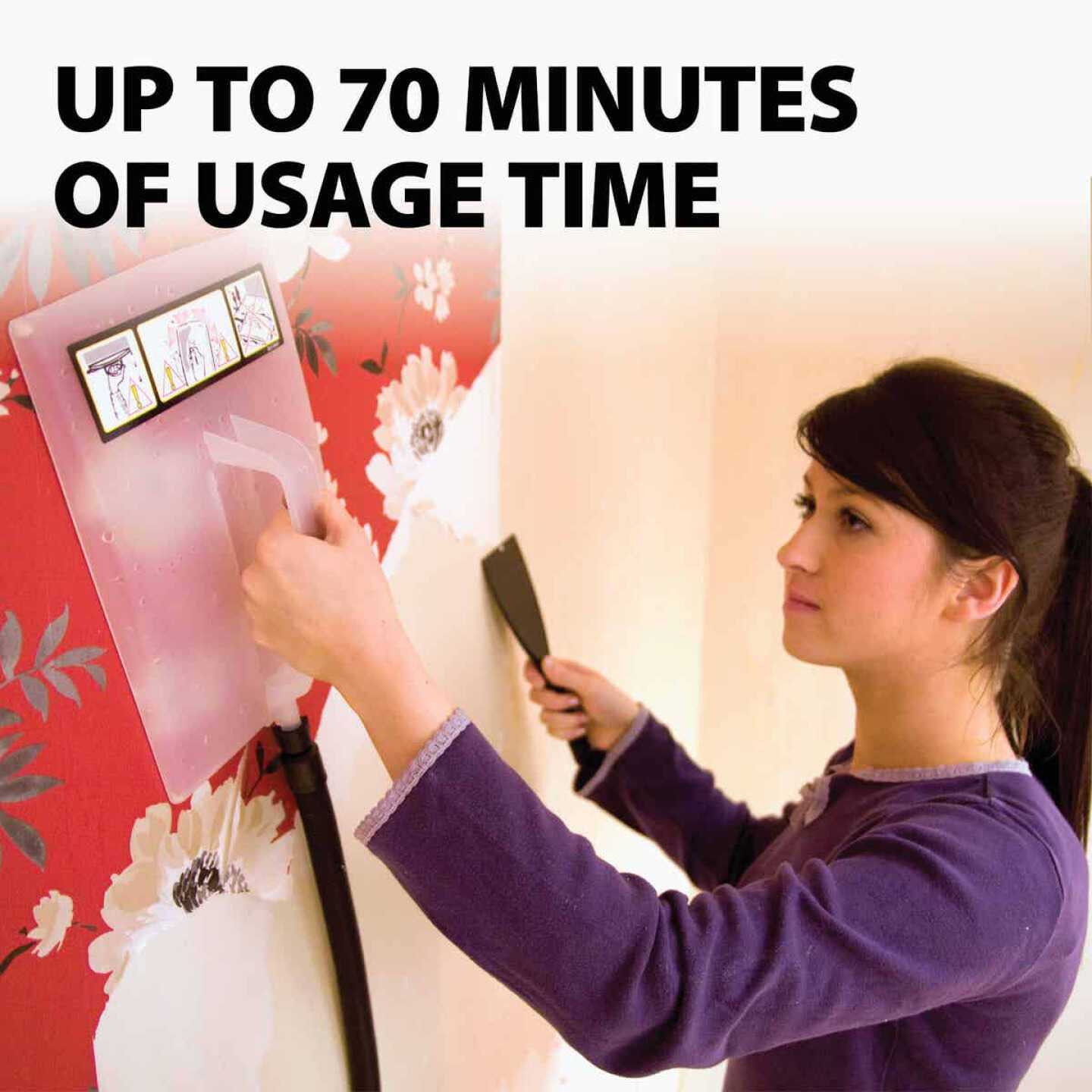 The Wagner 725 Wallpaper Steamer is great for removing wallpaper without using any harsh chemicals. Use this steamer to quickly and effectively remove every inch of outdated wallpaper in your home without the use of harsh chemicals. Simply apply steam to your surface and the high temperature steam will soften the wallpaper adhesive for easy removal. Use the 3 x 6 steam plate for small areas then switch to the 8 x 11 steam plate for large work areas. The new and improved steam plates provide more uniform distribution of steam and higher efficiency to speed up project. With a 2 hour run time on a full tank, youll have your wallpaper gone in a flash.