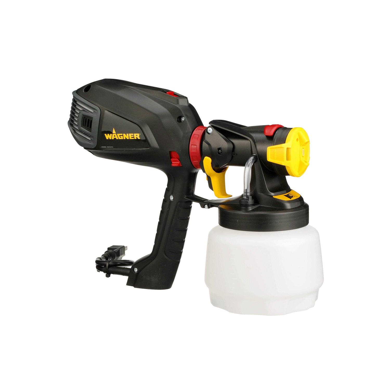 The Wagner FLEXiO 2500 Hand Held HVLP paint sprayer applies coatings 8X faster than a brush and the spray gun is a paint sprayer for home interior and exterior projects. It offers a smooth, consistent finish when spraying ceilings, interior walls, decks, fences, sheds and more. The spray paint gun features a lightweight, compact design that greatly reduces user fatigue and makes it easier to handle when spraying. It also features multiple adjustable settings to suit your project needs. The two speed turbine allows you to turn to high for thick materials and low for thin materials. You can also adjust the spray width, the material flow control and the spray pattern. The X-Boost turbine delivers the power to spray unthinned paints and stains right from the can, including paints and primers, solid stains, sealers and more. The hvlp paint sprayer comes with included cup liners for quick and easy clean-up, plus the sprayer features few parts that separate and rinse clean so that your sprayer is ready for next time.