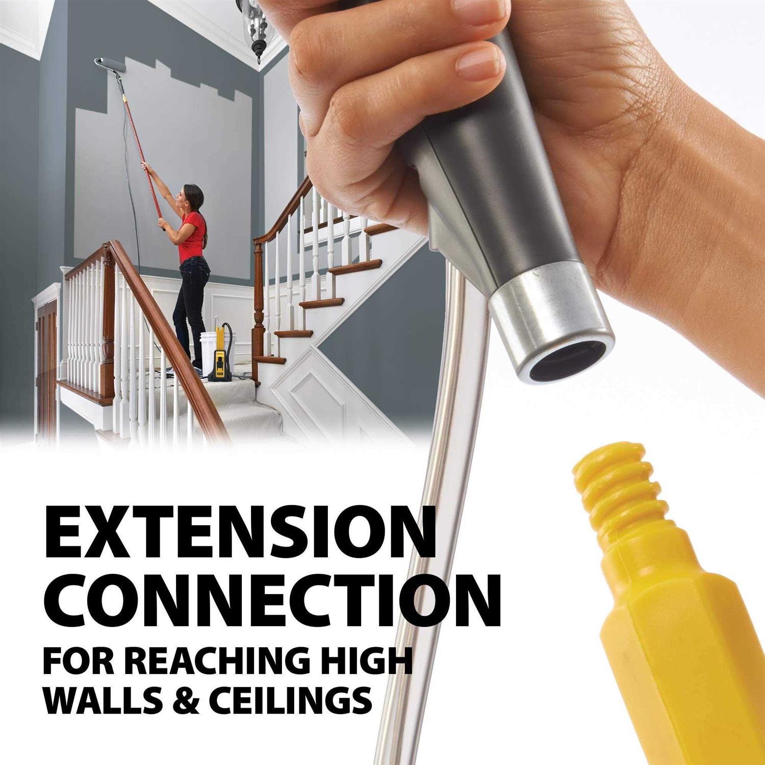The Wagner SMART Sidekick paint roller makes it easy to paint multi-rooms and large walls and ceilings in your home with greater ease and efficiency compared to traditional paint rollers. This power roller draws paint directly from your 1 or 5 gallon paint container, which eliminates the need for messy roller trays. This also provides continuous painting coverage to quickly paint large areas. The roller features a 16 ft. hose, which feed paint directly to the roller cover and provides long reach to paint tall walls and ceilings. The roller also features an extension connection handle that allows you to increase the handle length for added reach by simply attaching a common threaded extension pole. The SMART Sidekick is the perfect upgrade to traditional paint rollers and will be a lifesaver to have for your next home makeover!