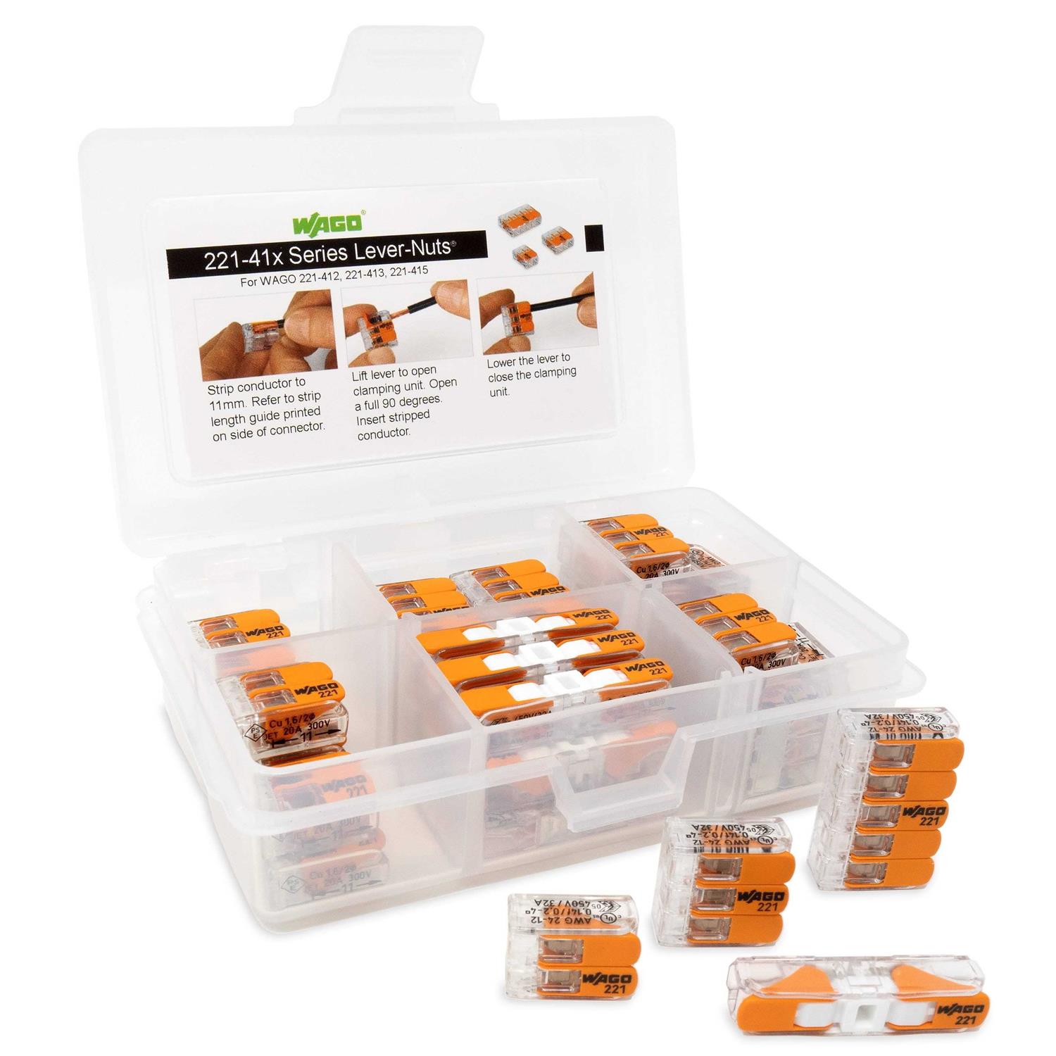 WAGO 221 LEVER-NUTS 35pc Compact Splicing Wire Connector Assortment with Case