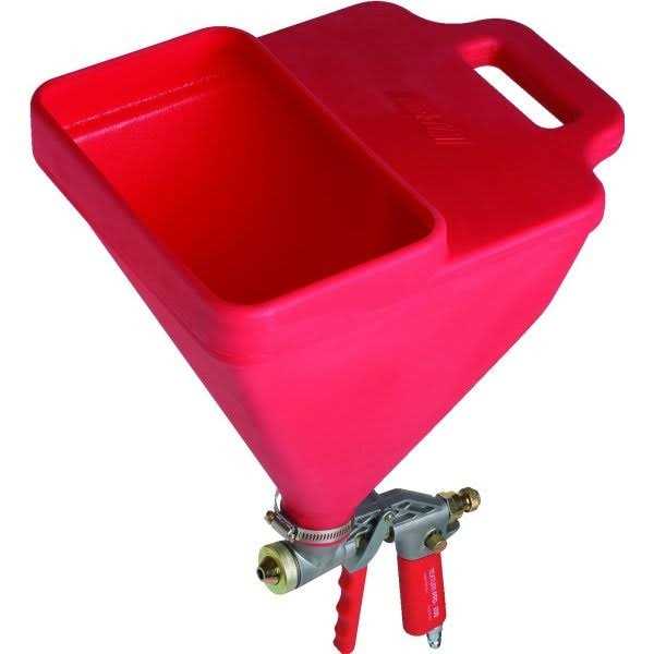 • Featuring an air control valve at the gun, this hopper gun allows for easy flow control without the need for a separate pump.