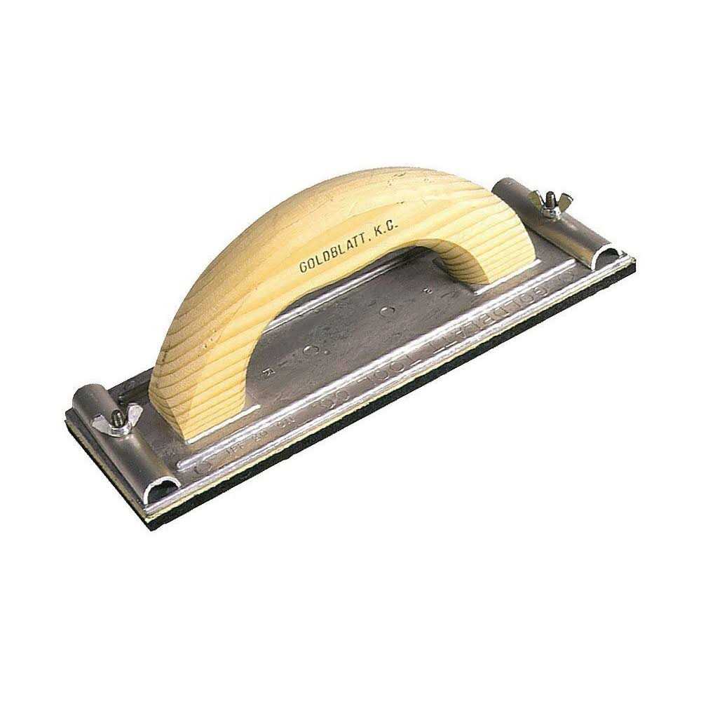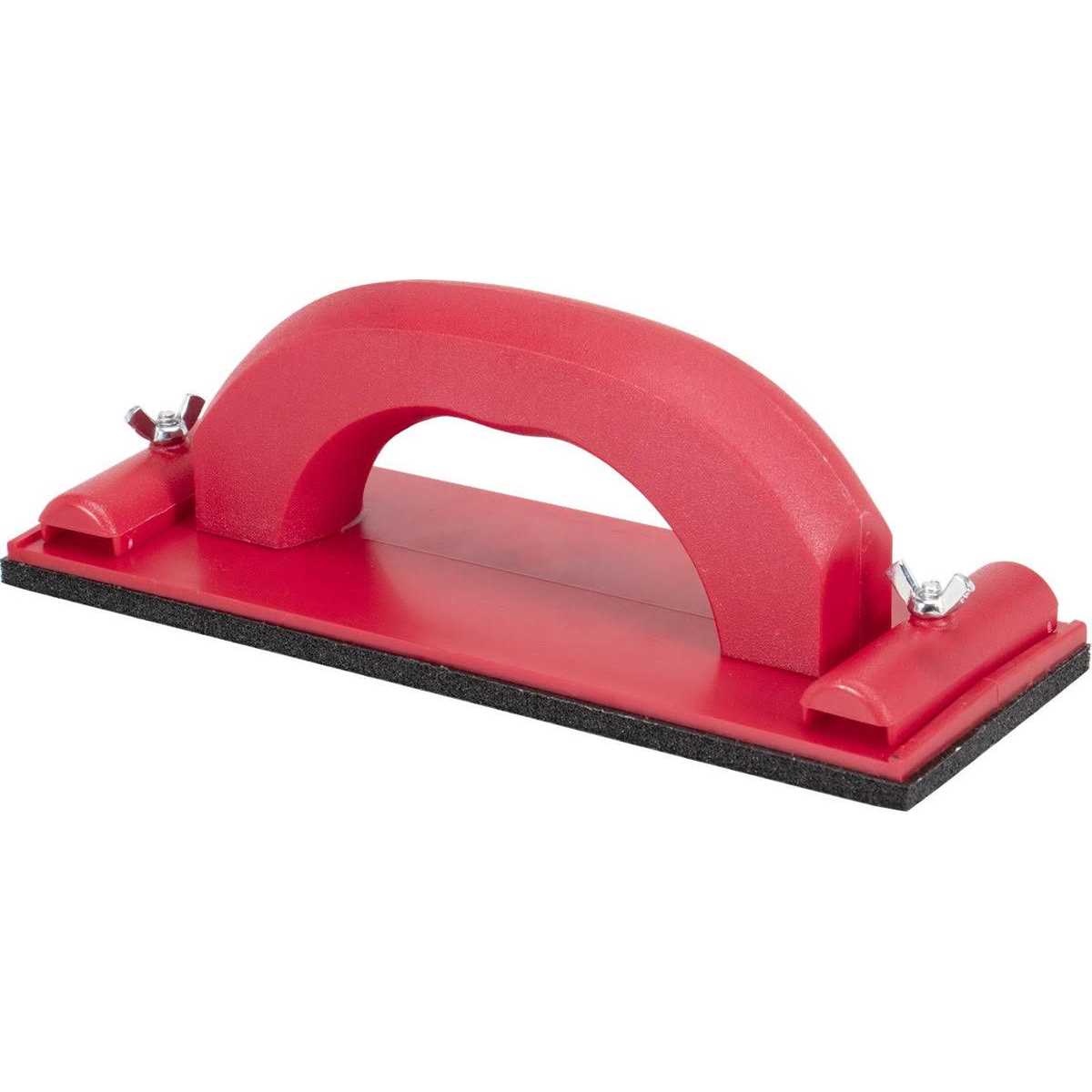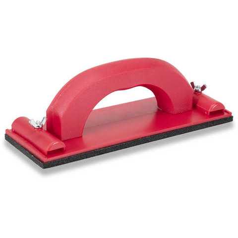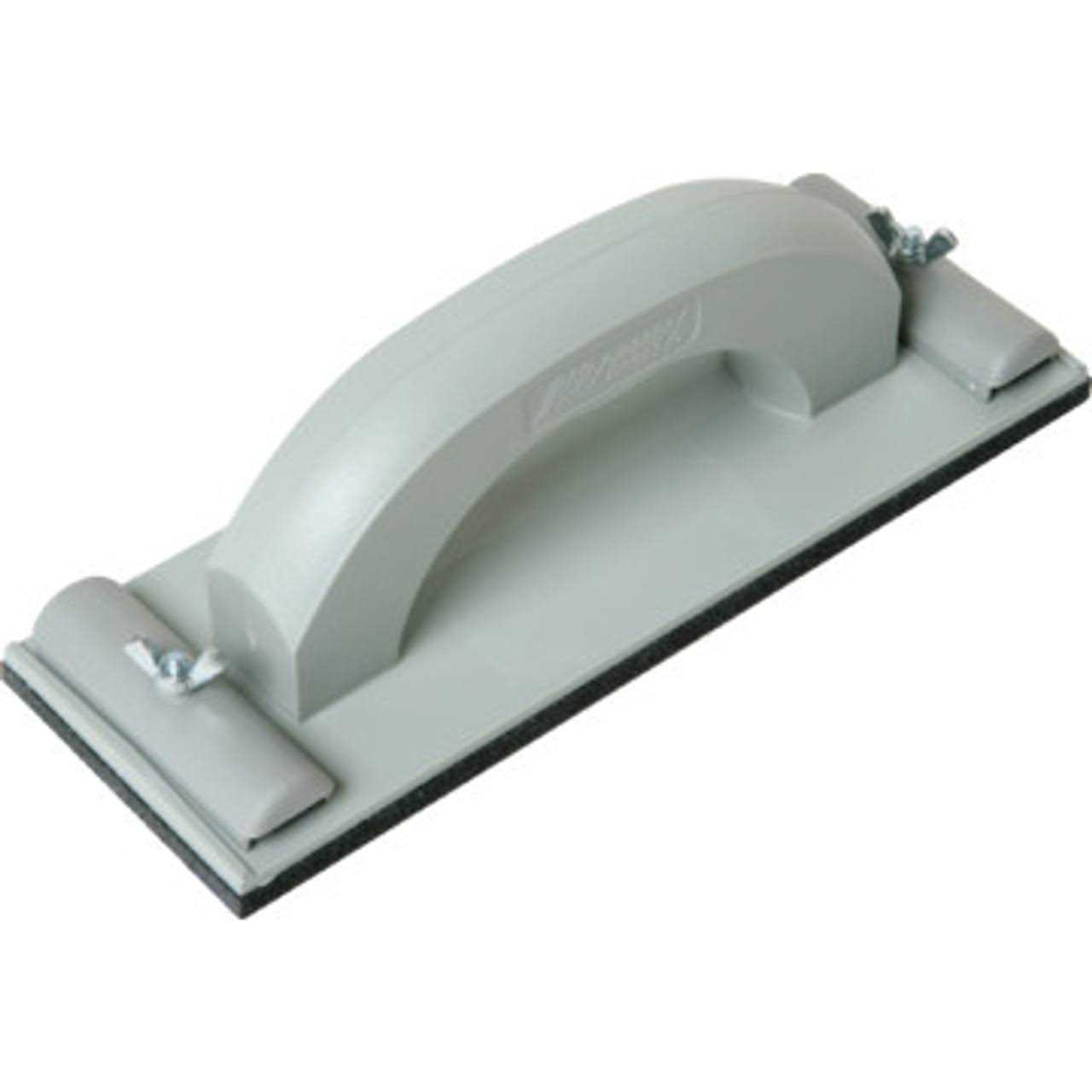 The WAL-BOARD TOOLS Plastic Handle Hand Sander for sanding joint compound features a clamp design, making it easy to load and unload sandpaper. Its smooth contour handle gives you the perfect grip. It is compatible with die-cut sandpaper for excellent performance and is made from durable injection-mold plastic with a polyethylene pad. This sander is lightweight and comfortable to use.