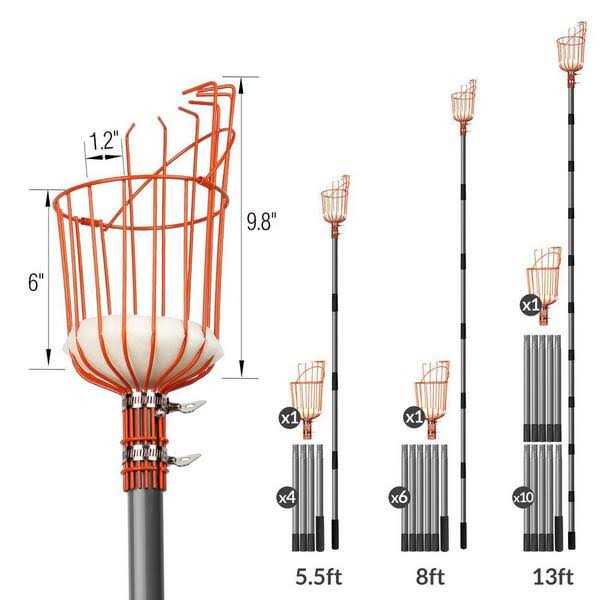 Fruit picker stainless steel pole kit is the perfect high-reach fruit picking solution. It will be easy to pick fruits without climbing a ladder. Just hook the branches with the teeth of the fruit picker and gently pull it to pick fruit in the basket.