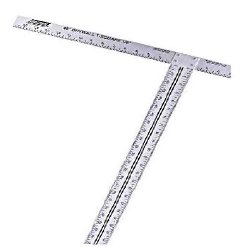The Walboard Tool 88-012/WTS-50 48 inch T-Square is calibrated precisely to allow for optimal accuracy in all of your measurements for your projects. This tool is made from heat-treated aluminum construction, providing a reliability you can count on in a variety of environments. The drywall T-square features an anodized finish that will assist in preventing rusting, thereby extending the life of its print. It has aircraft, alloy-steel rivets. With this aluminum T-square, you get a reverse-ruled blade for accurate measurements in either direction you go as you work.