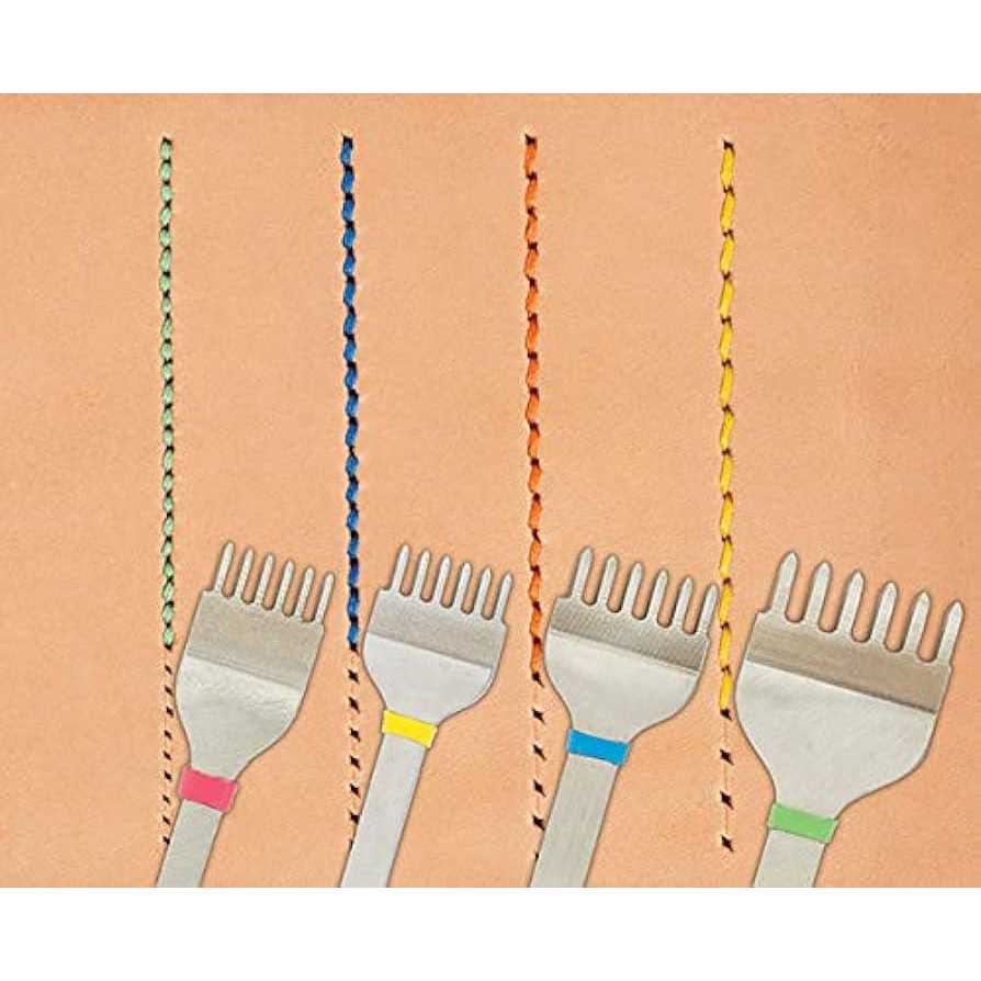Punch perfect holes for hand sewing and saddle stitching leather. Diamond stitching chisels feature a precise, diamond shape for quick, effortless punching. Quality carbon steel construction Colour coded for quick size reference 3 pc set including 2 prong, 4 prong, 6 prong Measurement is point to point with 9 stitches per inch.