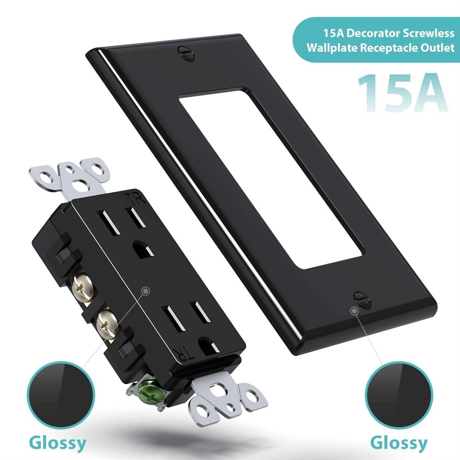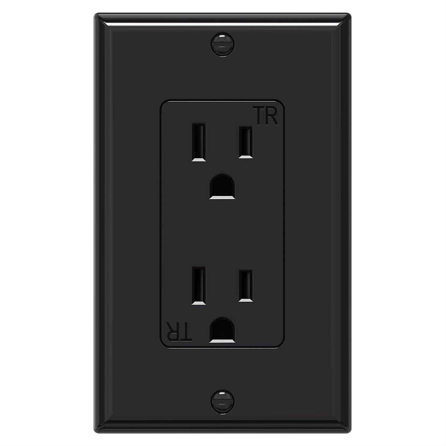 WEBANG Decorator Electrical Wall Outlet Black Tamper-Resistant Duplex Receptacle Residential Grade 3-Wire Self-Grounding 2-Pole 15A 125V ETL