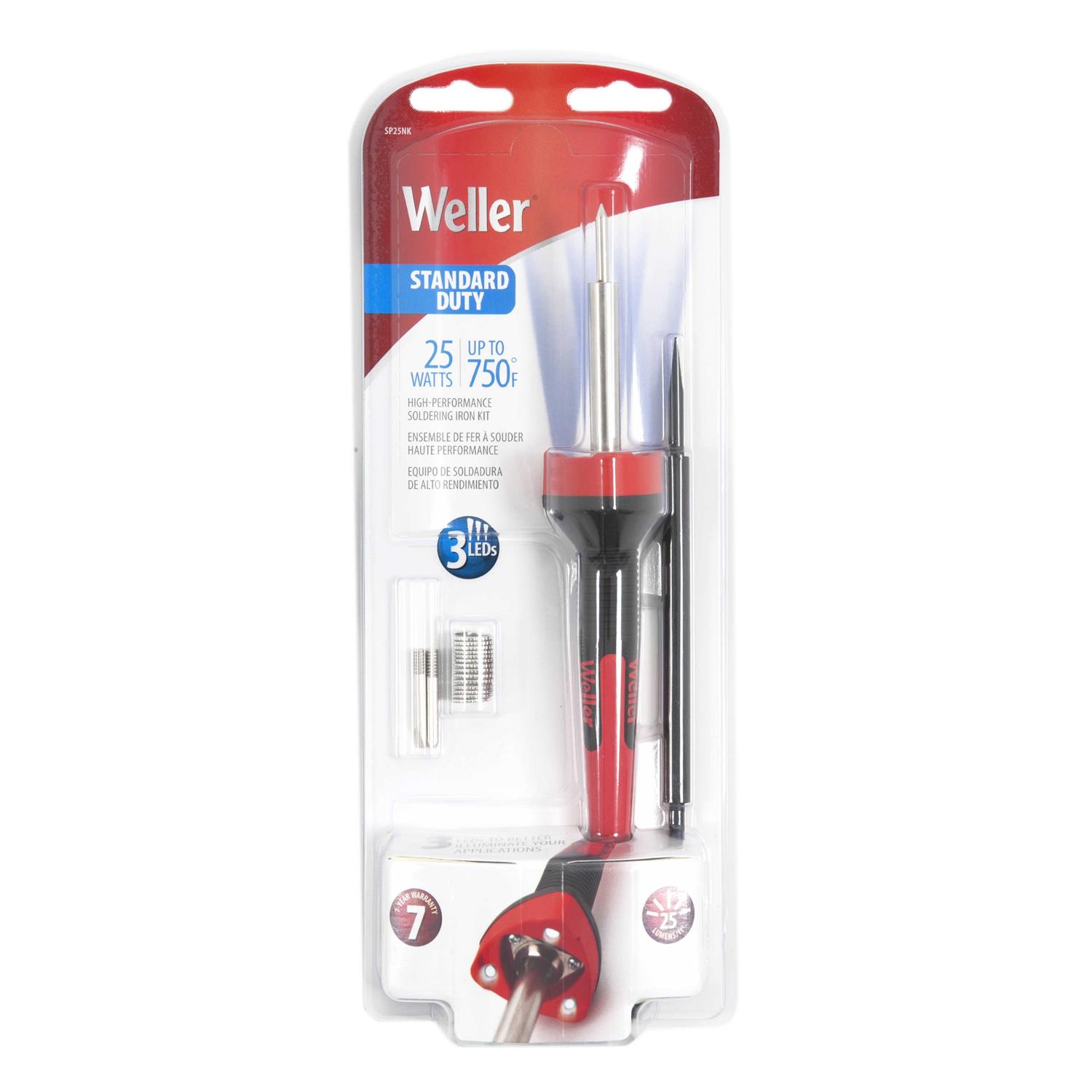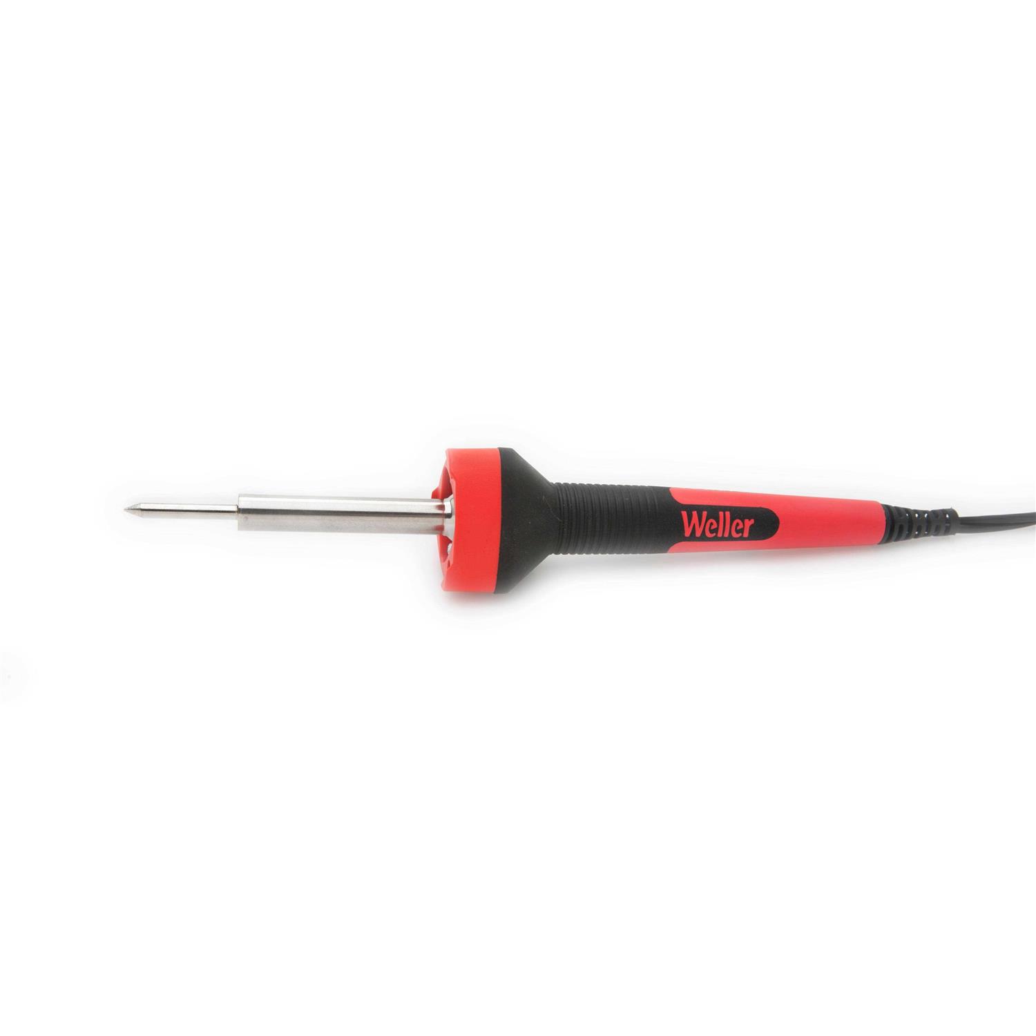 The Weller Soldering Iron with LED Light is a high performance, standard-duty consumer Soldering Iron with the latest LED technology. 3 LED’s deliver light to the application for superior accuracy. A triangular from housing captures the LED’s. The soldering iron delivers both comfort and flexibility. A round, soft-grip, non-slip handle design helps relax the hand during extended use.