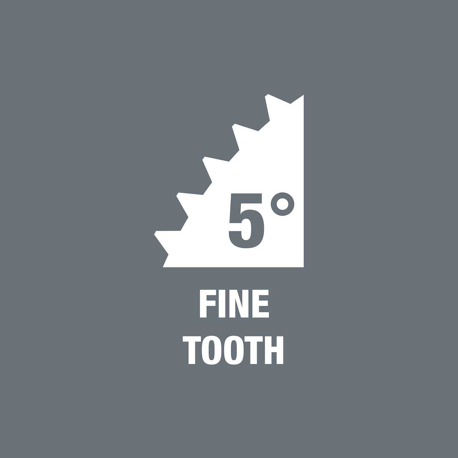 • Freely pivoting ratchet head with 5 predefined locking positions