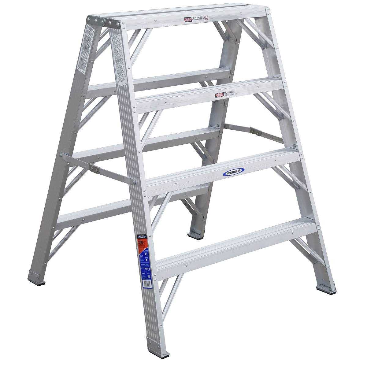 For a strong and trustworthy platform stand suitable for any number of tasks, call on the Werner Type IA Aluminum Work Stand. It has a 28-inch wide serrated top surface that resists slipping for comfort and safety. The aluminum work stand has slip-resistant TRACTION-TRED steps that have double angle bracing. PINCH-PROOF spreaders prevent accidents. In addition, the mar-resistant bottom feet minimize the chances of the stand slipping on slick surfaces. The Werner work stand has a load capacity of 300 pounds and can therefore support up to two people. The heavy steel hinges provide extra durability and strength. The Werner portable work stand can be easily transported as it weighs just 17.5 pounds. It measures three feet tall, making it compact.