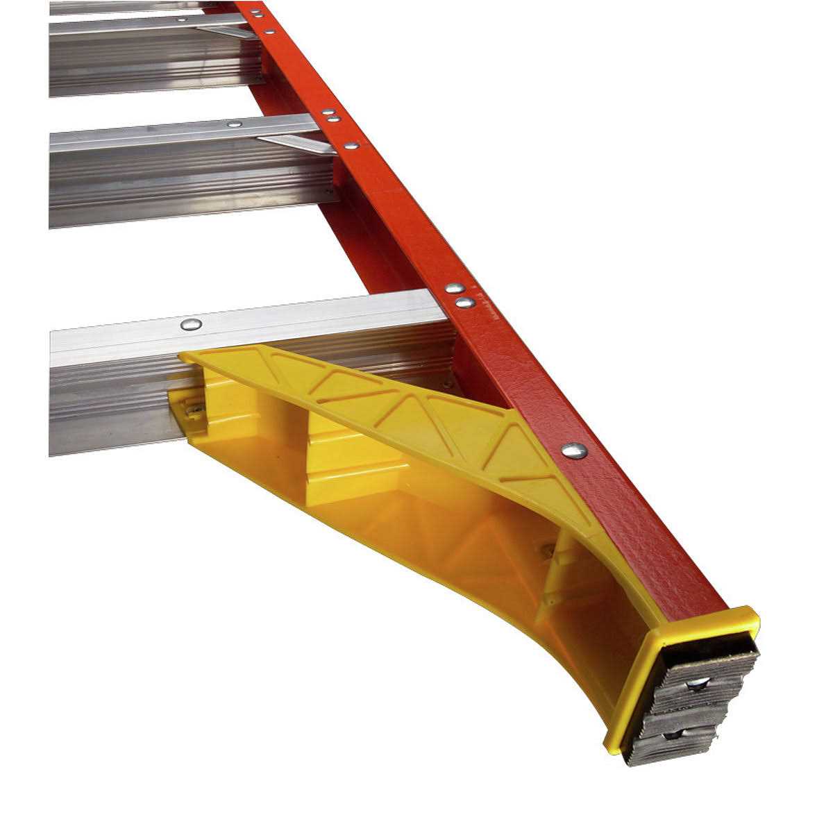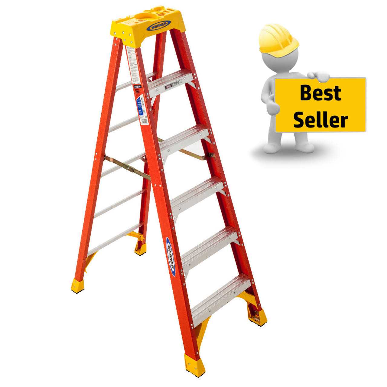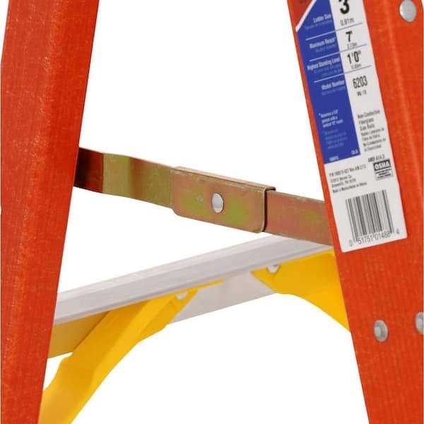 Werner 6203 | 3 Ft Fiberglass Stepladder / 300 lb Rated The Werner 6200 Series Step Ladders are design for professional contractors and industrial users. With a duty rating of 300 pounds, this series features a HolsterTop with the Lock-In System to secure tools from falling while keeping them right at hand. These ladders offer a full set of rear horizontals and heavy duty internal spreaders. All steps are knee braced and the foot pads are riveted to the EDGE structure. The EDGE bracing system helps protect the rail from damage. Each Traction-Tred step is slip resistant and double riveted. Fiberglass rails are non-conductive for working near electricity. FEATURES Designed for one person jobs Back-up plates to reinforce top connectors Internal Spreaders Molded braces Full set of rear horizontals Shoulder bolt and nut on top hinge Every rivet backed up by metal plate or washer to protect fiberglass Slip-resistant Traction-Tred steps all knee braced Electrically non-conductive side rails SPECIFICATIONS The PK76-3 series Universal Auto-Closing Pail Shelf comes with mounting hardware and instructions. SPILL-PROOF rugged construction. Easy to keep clean and automatically closes with the stepladder. Built-in rag rack.