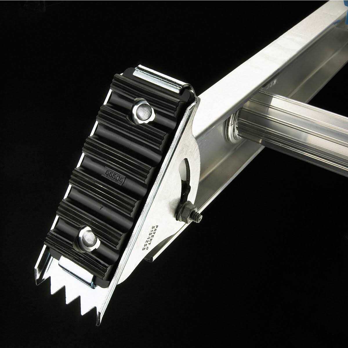 For all those hard-to-reach spots, climb up this aluminum extension ladder from Werner, which is easily adjustable for a range of projects. In addition to supporting up to 250 lb., this extension ladder has d-rung-shaped rungs and swivel shoes. Width measurements at the bottom come to 17-1/2″. With safety at the forefront, the Ansi type is I.