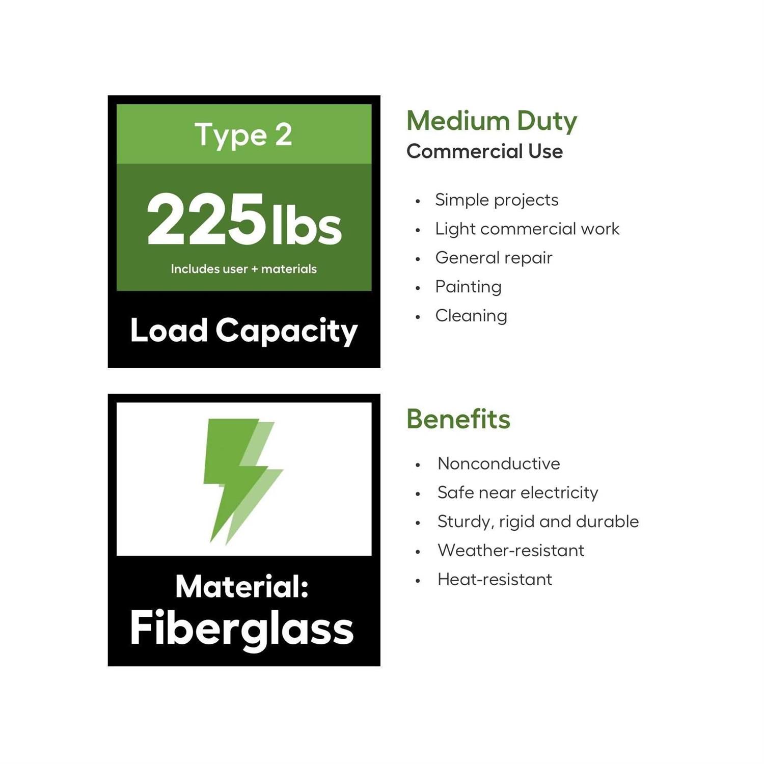 The Werner D5916-2 16′ Fiberglass Extension Ladder is outstanding for contractors and DIYers alike. It is duty rated for 225 pounds and features large extruded spring locks and a rail shield bracket for durability and strength. This Werner Extension Ladder also comes with a slip-resistant shoe pad and spur plate made of rubber. Its D-rings are flat and deeply serrated for safe and easy climbing. The Werner D5916-2 16′ Fiberglass Extension Ladder has rung wear sleeves made of polyethylene for additional safety.