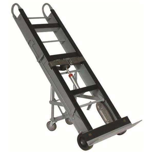 Non-marking gray vinyl on all contact surfaces securely mounted to truck. 2 inch wide heavy duty web belt included. Wesco continuous belt stair climbers included .
