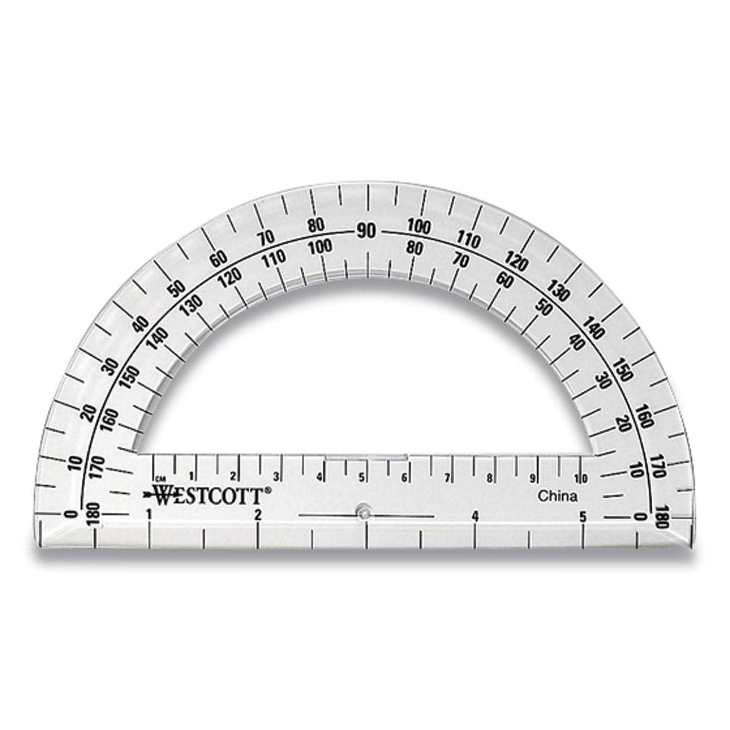 This Westcott Plastic Protractor is ideal for home, classroom or studio use. It measures angles from both sides, which makes it a handy teaching tool. Durable, transparent plastic construction makes it easy to use. It has an accurate 4 inch ruler at the base with highly visible English and metric system markings. This 180-degree Westcott protractor also has sharply defined graduations, and it comes in a plastic sleeve for storage.