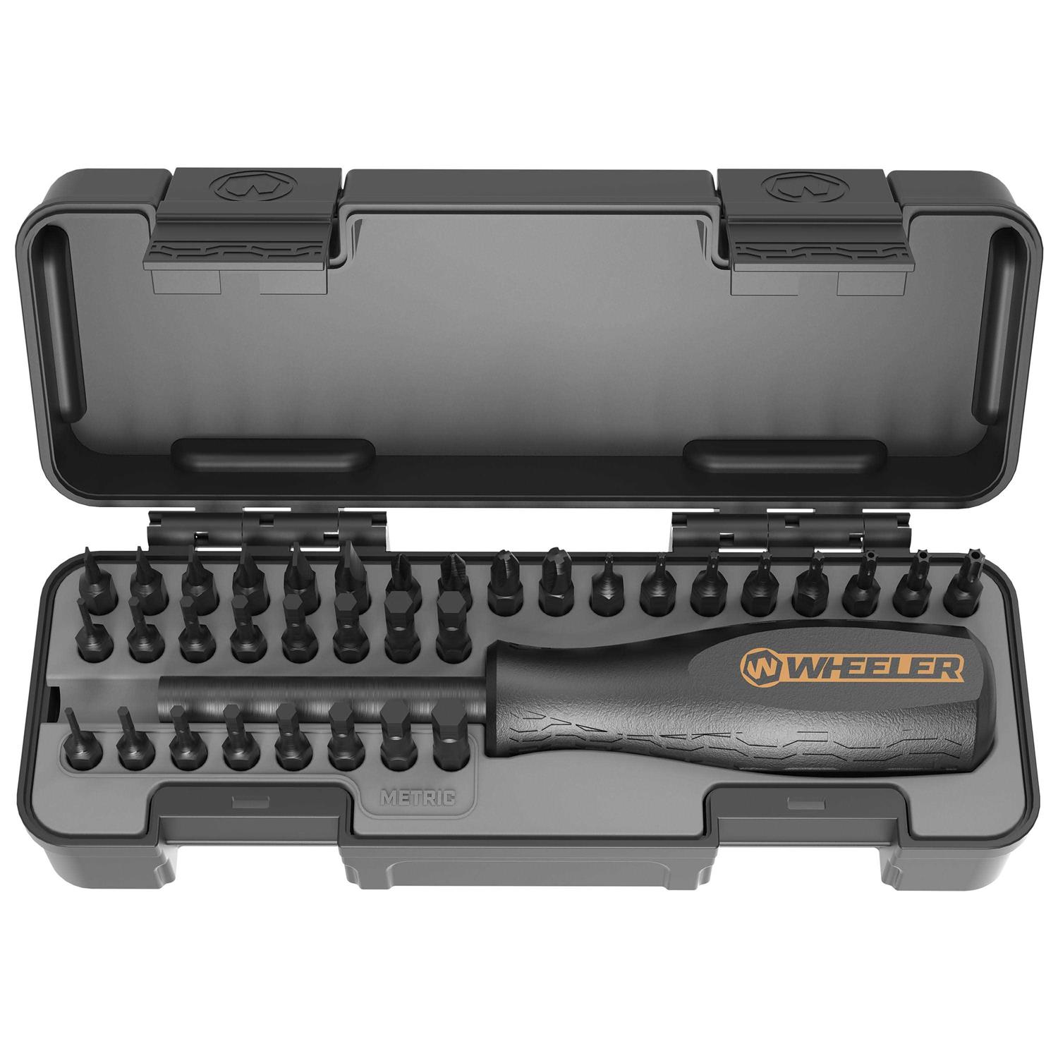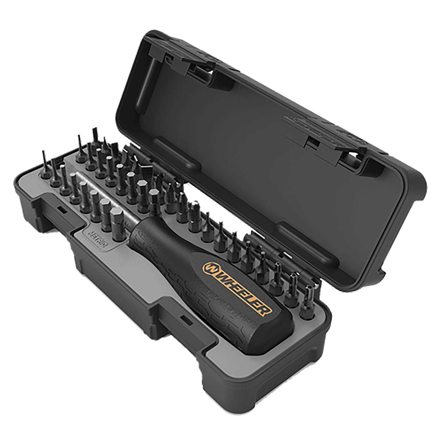Small but mighty” the Wheeler 36 Piece Spacesaver Screwdriver Set provides a convenient assortment of SAE and Metrix Hex” Torx” Phillips” and Flat bits” perfect for common household tasks.