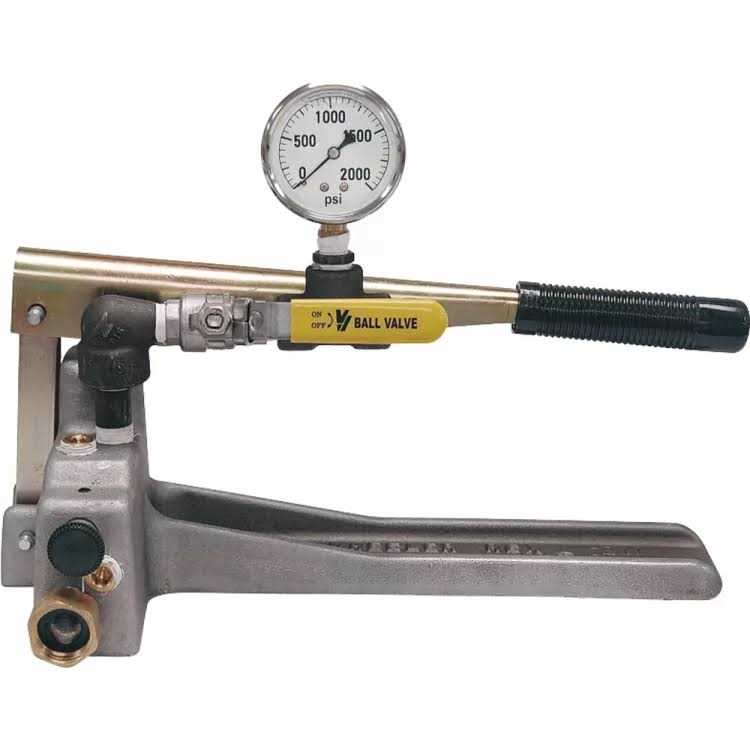 The Wheeler Rex 29201 manual Hydrostatic Test Pump 1000 PSI is useful for testing residential water lines as well as various other pressurized systems including: small pressure tanks, sprinkler systems, boiler systems and solar systems with pressures up to 1000 PSI. This lightweight and easy to use test pump uses a standard 3/4″ garden hose female inlet and a 9/16″- 18 JICF (Joint Industry Conference Fitting) male outlet. The Wheeler Rex 29201 manual Hydrostatic Test Pump 1000 PSI includes a shut off valve, gauge, adjustable internal relief valve and 10 foot output hose.
