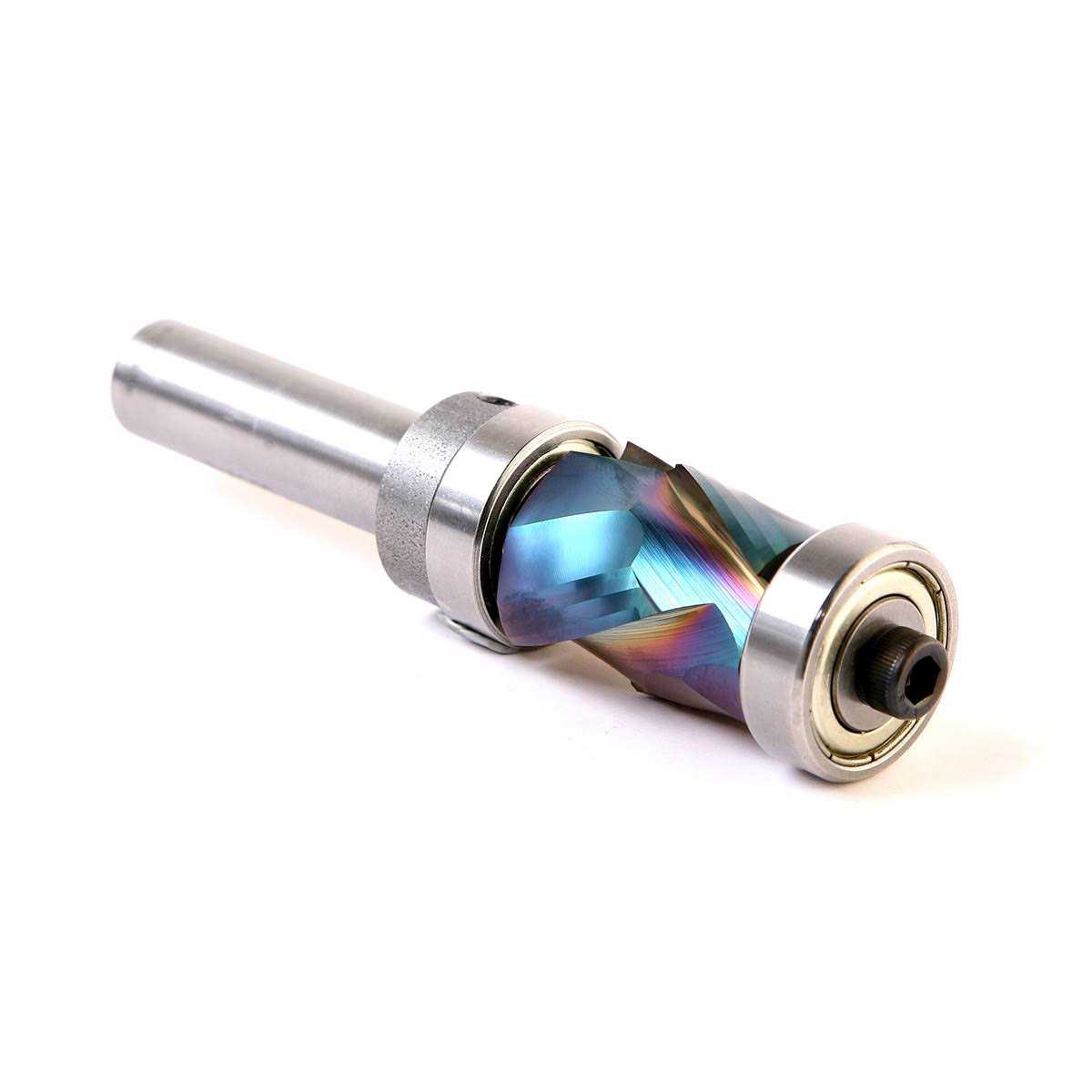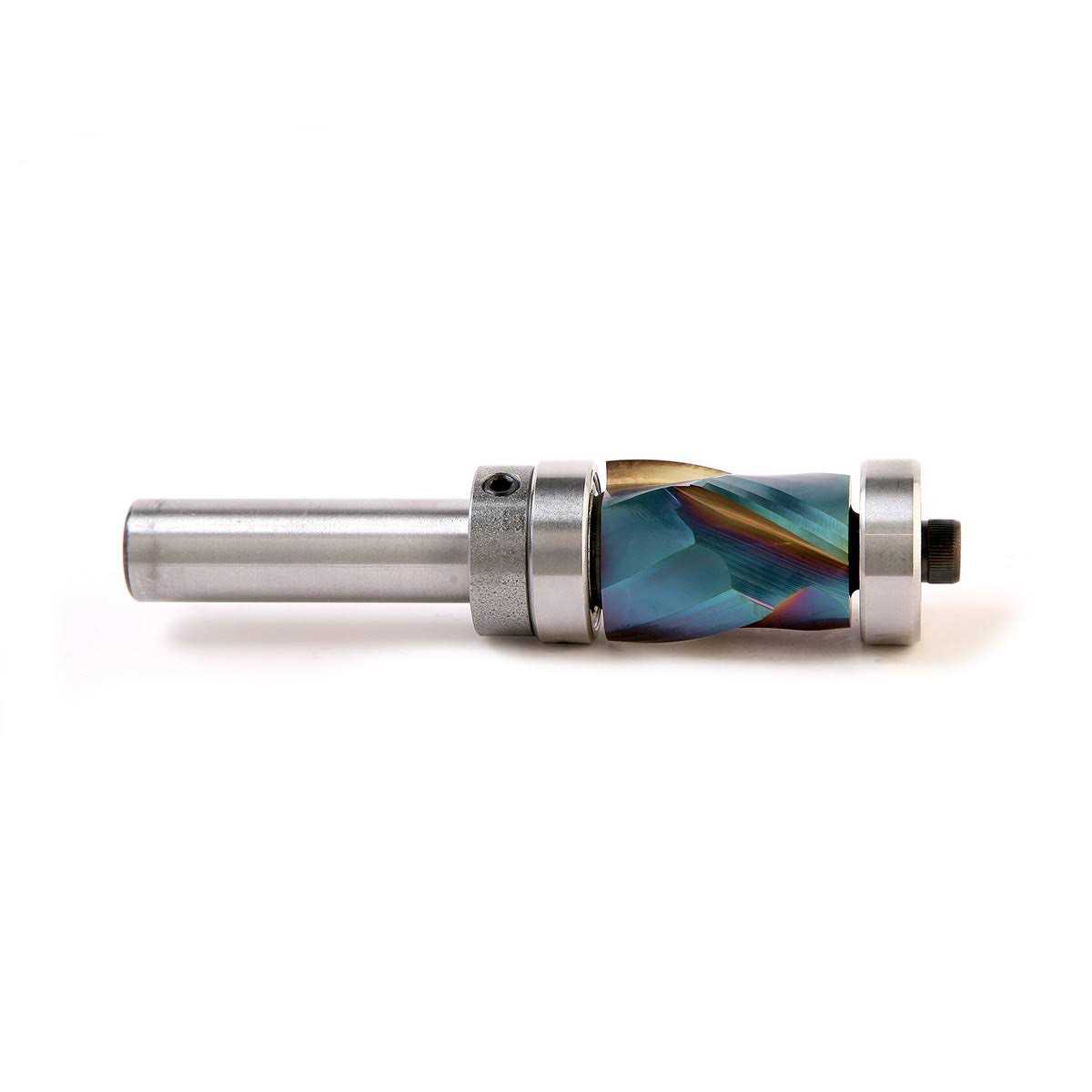 Compression spiral technology. 78 diameter for higher shear angles. Novice approved for creating perfect edges. Combination bit design with top and bottom bearing. The Ultimate in flush trim bits – if you use a lot of templates or use a router bit to flush trim, then this is the best that you can buy. These Ultimate Flush Trim Bits are perfect when working with templates or when using a router to flush trim matching wood surfaces. Whitesides compression spiral design, with a 78 diameter bearing guide, makes this bit easy to use in the router and produces a superior quality trimmed edge. This Combination Bit has a bearing on the end of the bit and on the shank allowing for a template to be placed on either side. The 78 carbide compression design creates a high shear angle for perfect cuts every time.