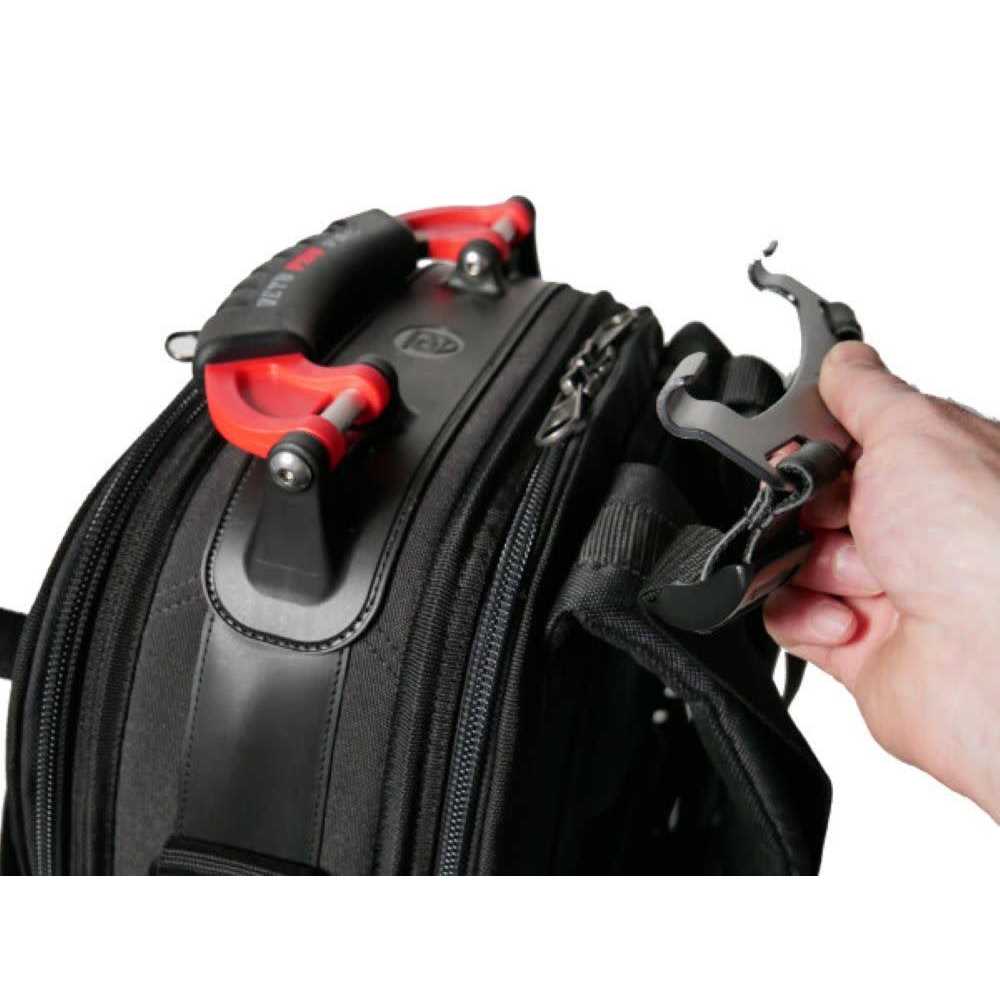 - Adjustable front-flap quick strap for manifold gauge and hose storage and added capacity