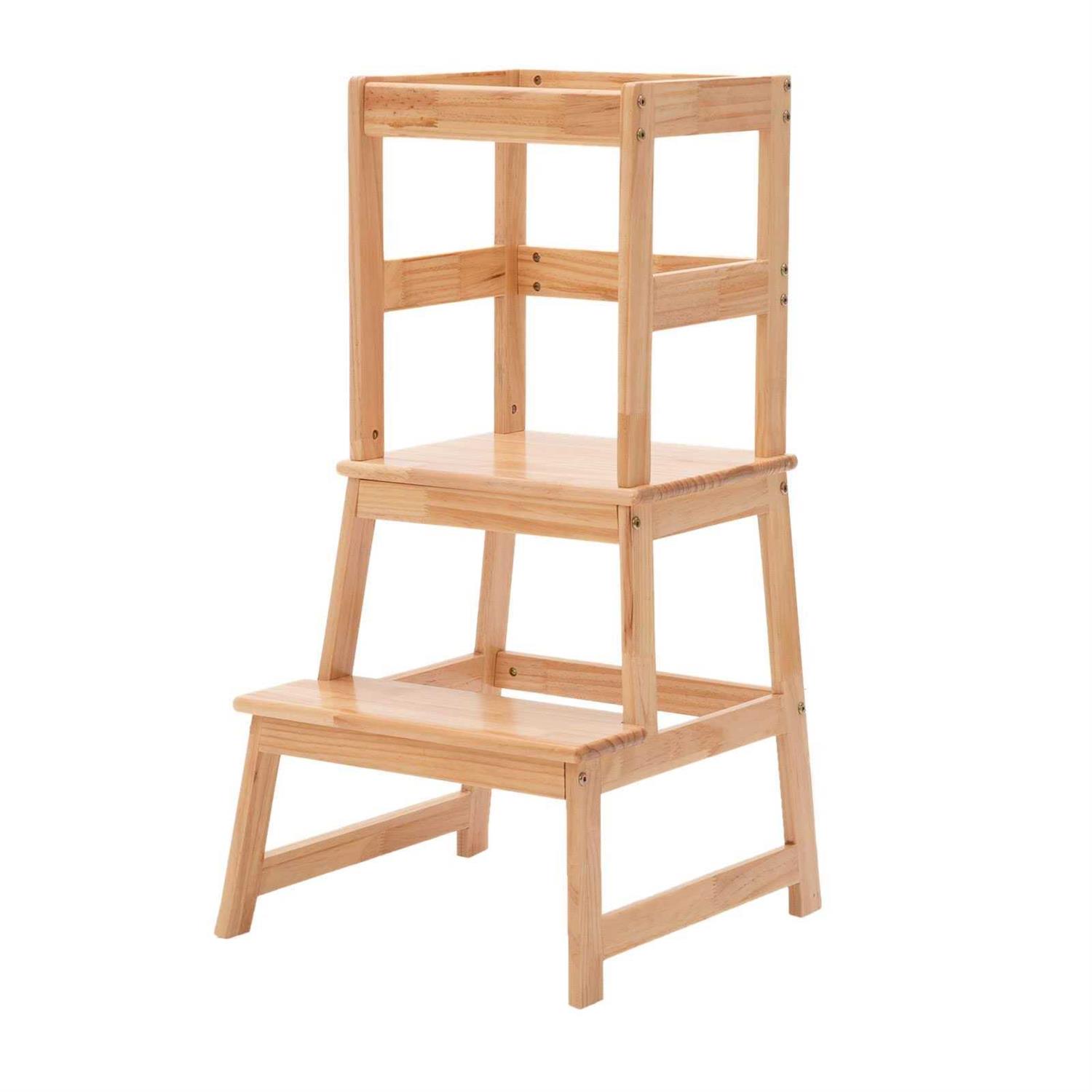 • Kitchen Step Stool for Kids with Safety Rail, Solid Wood Construction Toddler Learning Stool Tower