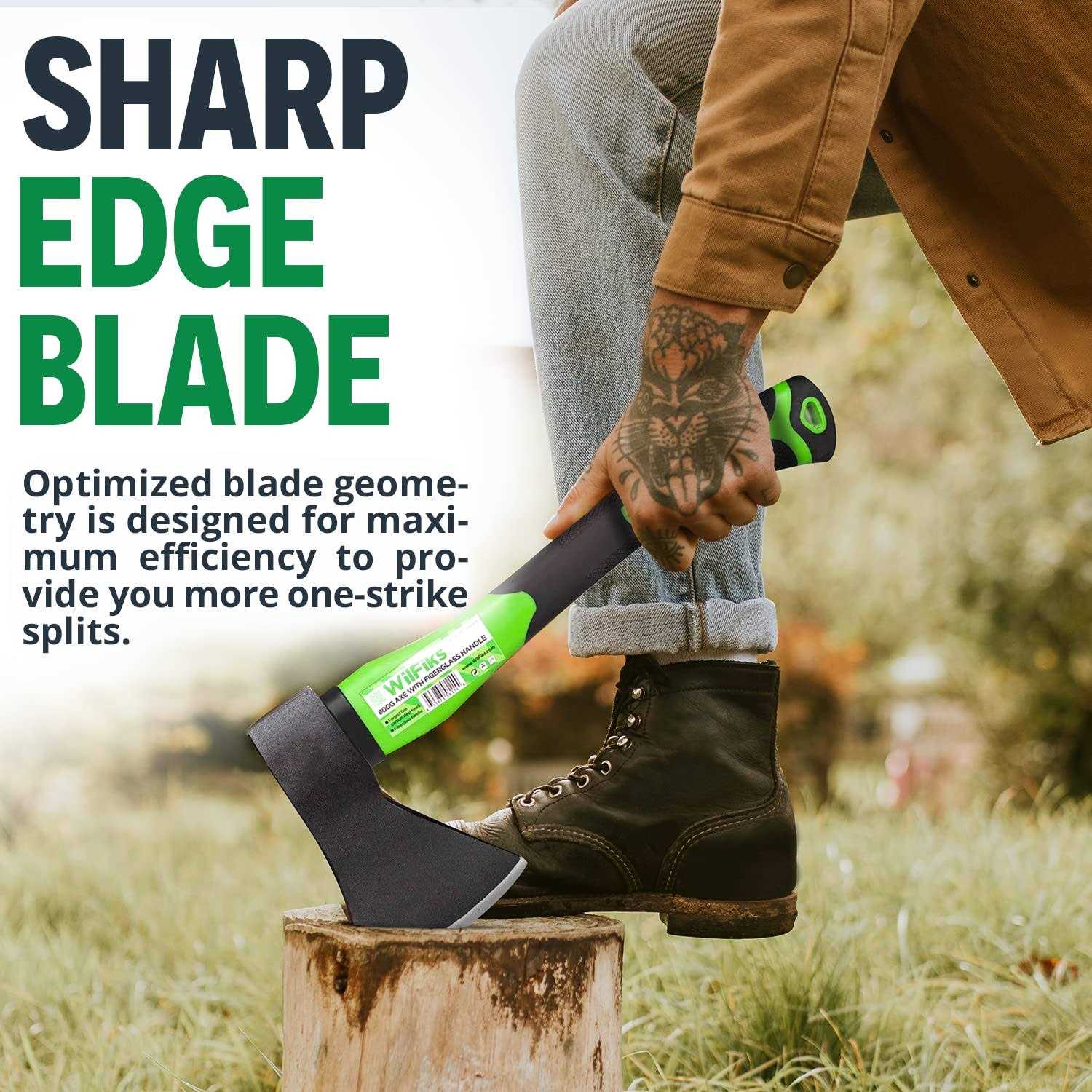 WilFiks Chopping Axe, 15” Camping Outdoor Hatchet for Wood Splitting and Kindling, Forged Carbon Steel Heat Treated Hand Maul Tool, Fiberglass Shock