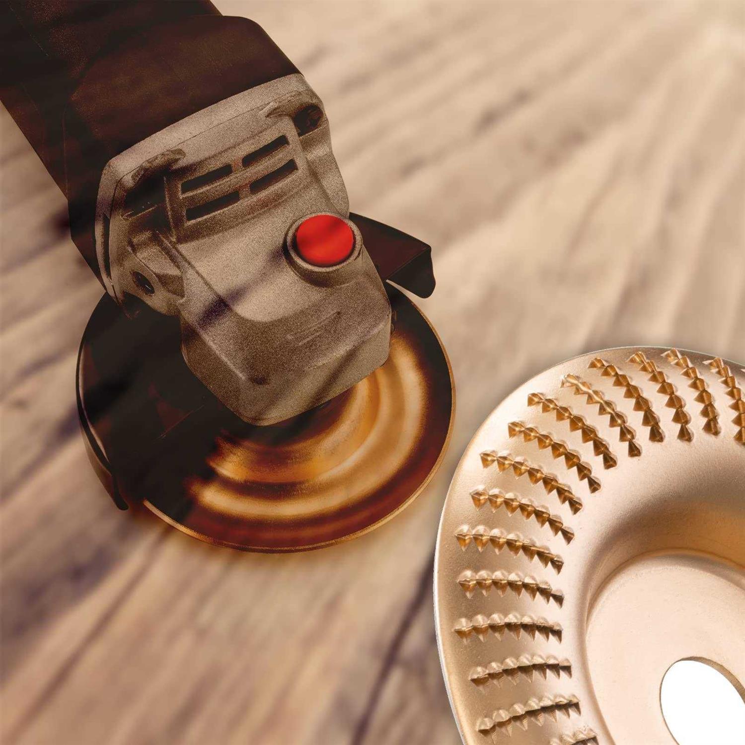 【Package Details】There are three different discs in the package to satisfy your different demands,1 flat grinder shaping abrasive disc, 1 bevel wood carving grinding disc, and 1 arc wood carving disc. The efficient and comfortable operation can remove a variety of materials, helping you quickly finish the woodworking and saving your time. 【Size】The woodworking grinding grinder compatible with 5/8 inch aperture angle grinders, the wheels out diameter about 100mm/4inch, the inner bore diameter measures about 16mm/ 5/8 inch, Easy and quick to install on the standard electric angular grinder. 【High quality】Wood grinder disc carbon steel consist of hundreds of pointed teeth that remove residue or hard material quickly, perfecting your manual diy, improving the efficiency of your work and saving your energy. 【Convenient usage】you can easily install the grinding disc on the standard electric angular grinder, then use it without tedious operation process,which can remove bits of wood quickly also fit for convex and concave areas, so that you can finish your work quickly. 【Practical】the wood grinding wheel is great for wood trimming , polishing ,peeling,chauffeuring,root carving, tea plate, and more, Good wears resistance, heat treatment give you an outstanding wear-life. Description: 3 Pieces 4 Inch 5/8 Inch Bore Wood Carving Disc Wood Shaping Wheel Wood Grinding Shaping Disc for Wood Cutting Shaping Polishing, This wood grinding wheel consists of hundreds of pointed teeth that remove residue or hard material quickly, which are more durable than sandpaper pads, saving your energy and improving the efficiency of your work. Specifications: Size: Outer diameter: 100 mm/ 4 inch Inner bore diameter: 16 mm/ 5/8 inch Material: carbon steel Color: gold Safety Instructions: 1. Do Not install carving disc on any grinder that requires mechanically modifying the safety guard to achieve proper positioning. 2. Wear goggles and heavy-duty work gloves during set up. Unplug the tool from its electrical outlet. 3. Please make sure the carving disc is fastened on your angle grind. 4. Do Not Carve wood containing foreign objects. Remove all screws and staples before using carving dis. 5. Please hold the angle grinder tightly when using it, so as not to be injured by the kickback force of the machine. 6. After using, please turn off the power switch of the angle grinder, and the standby device completely stops running. 7. Store indoors out of children’s reach.